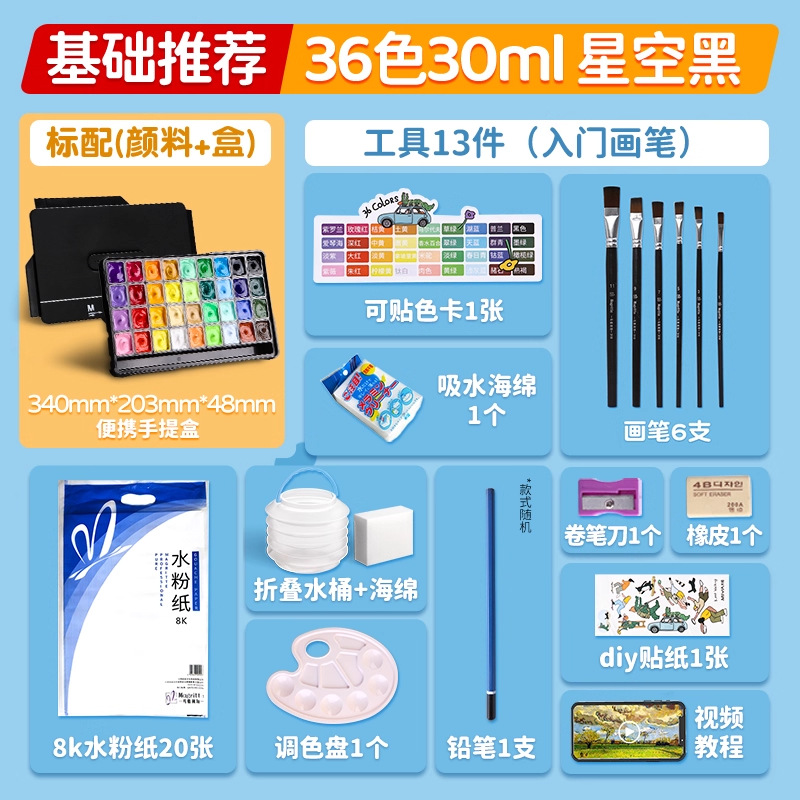 36 цветов, 30 мл, звездное небо, черный [расширенный набор из 19 предметов]