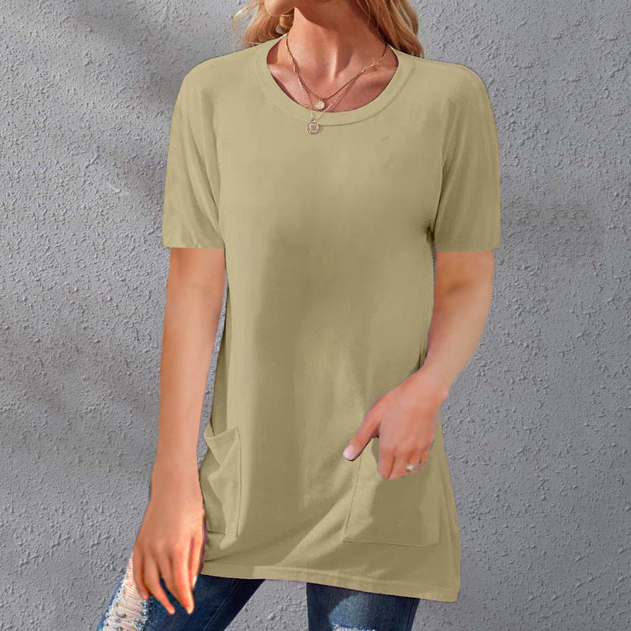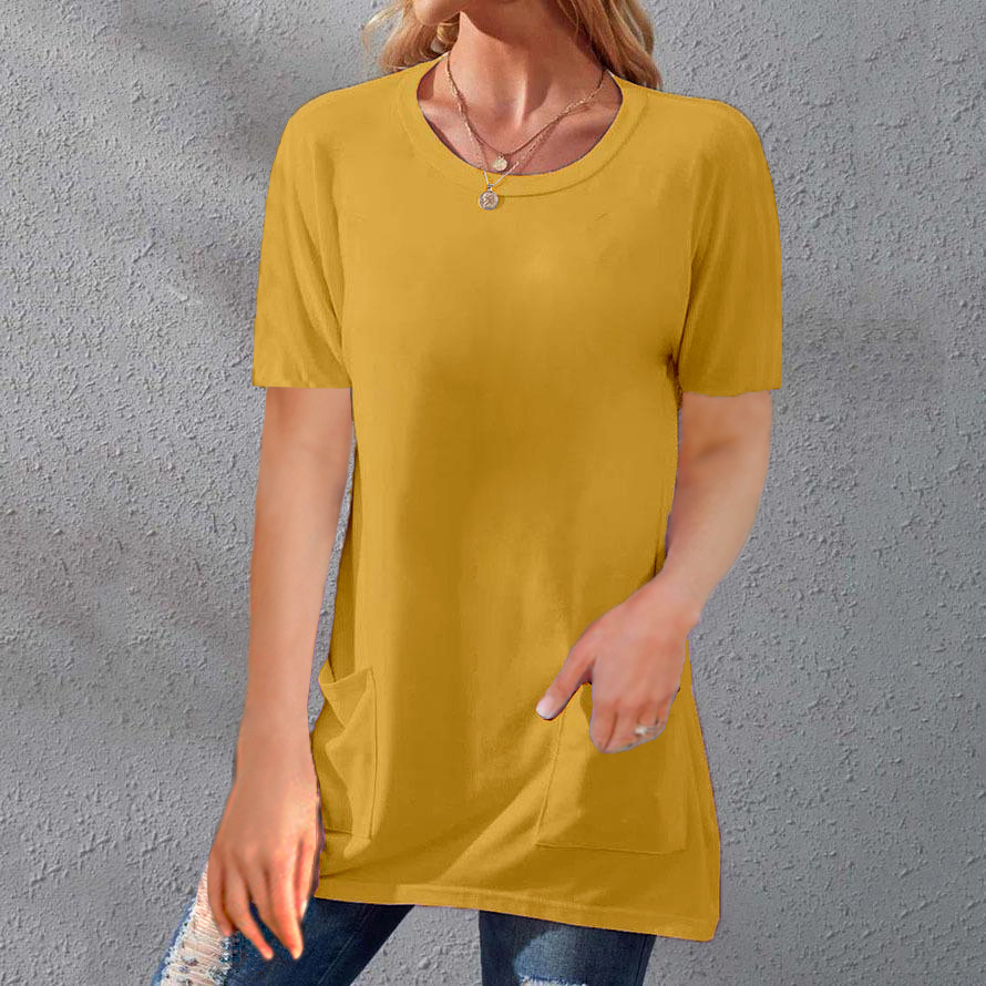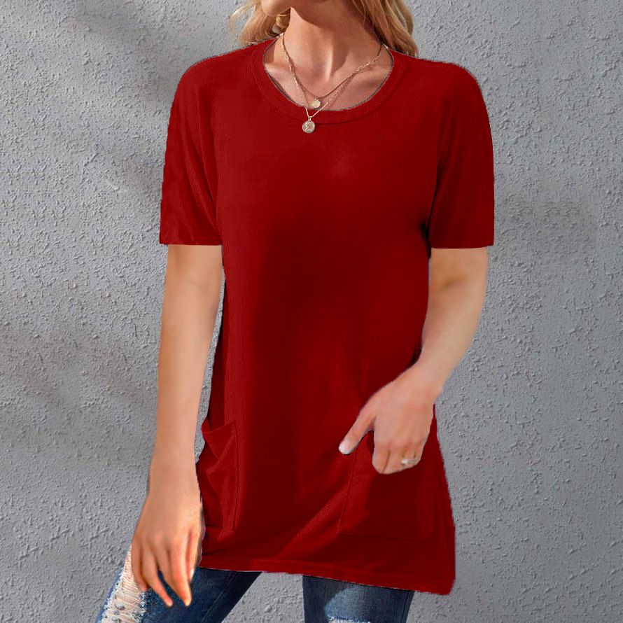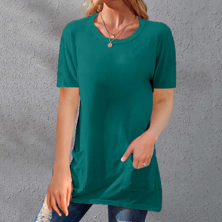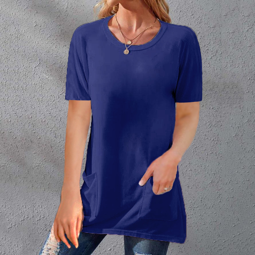 Главная страница > 2023eBay Amazon желает весны и лета новой европейской и американской футболки с круглым вырезом и длинными рукавами, свободной однотонной футболки с карманом, повседневная женская одежда