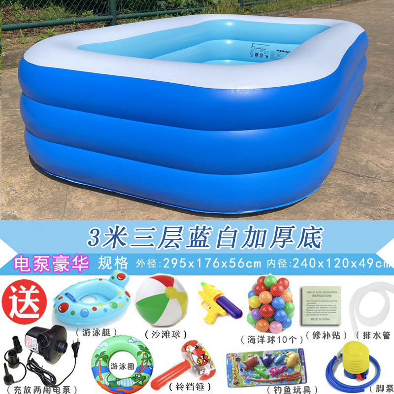 Роскошный пакет с электрическим насосом [быстрая надувание, много игрушек] - 2.9m слоя толстого синего и белого дна.