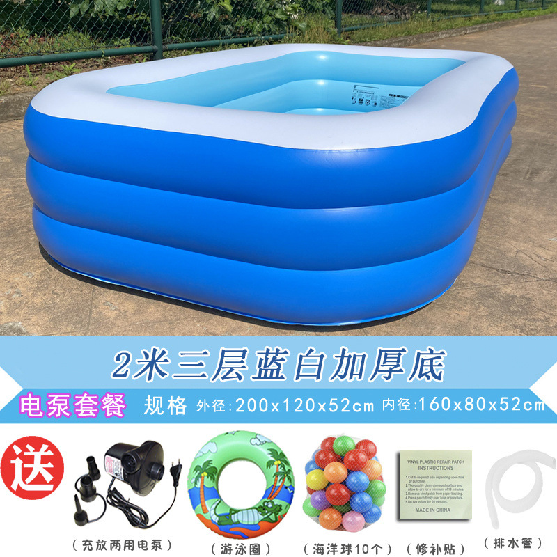 Роскошный пакет с электрическим насосом [быстрая надувание, много игрушек] - 2.4m слоя синего и белого толстого дна
