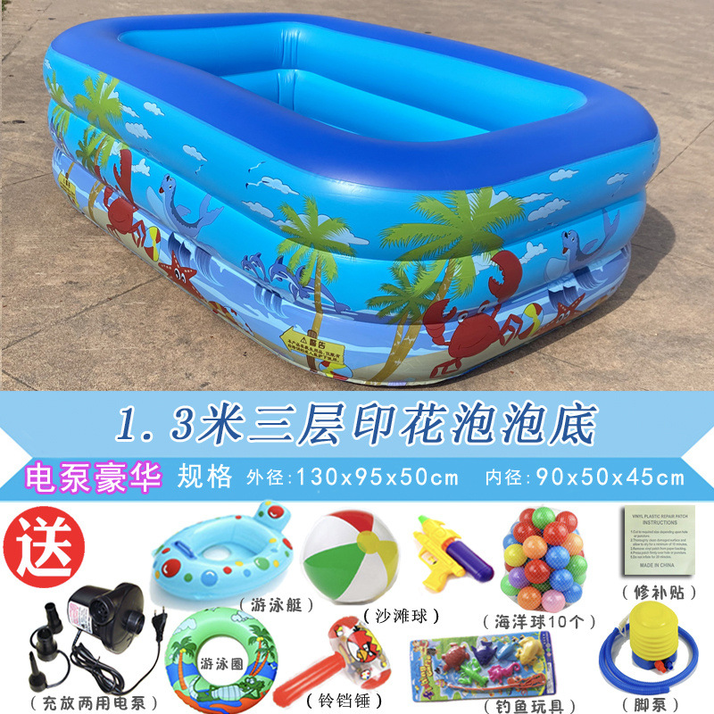 Роскошный пакет с электрическим насосом [быстрая надувание, много игрушек] - двухслойное пузырчатое дно длиной 1,2 м с принтом