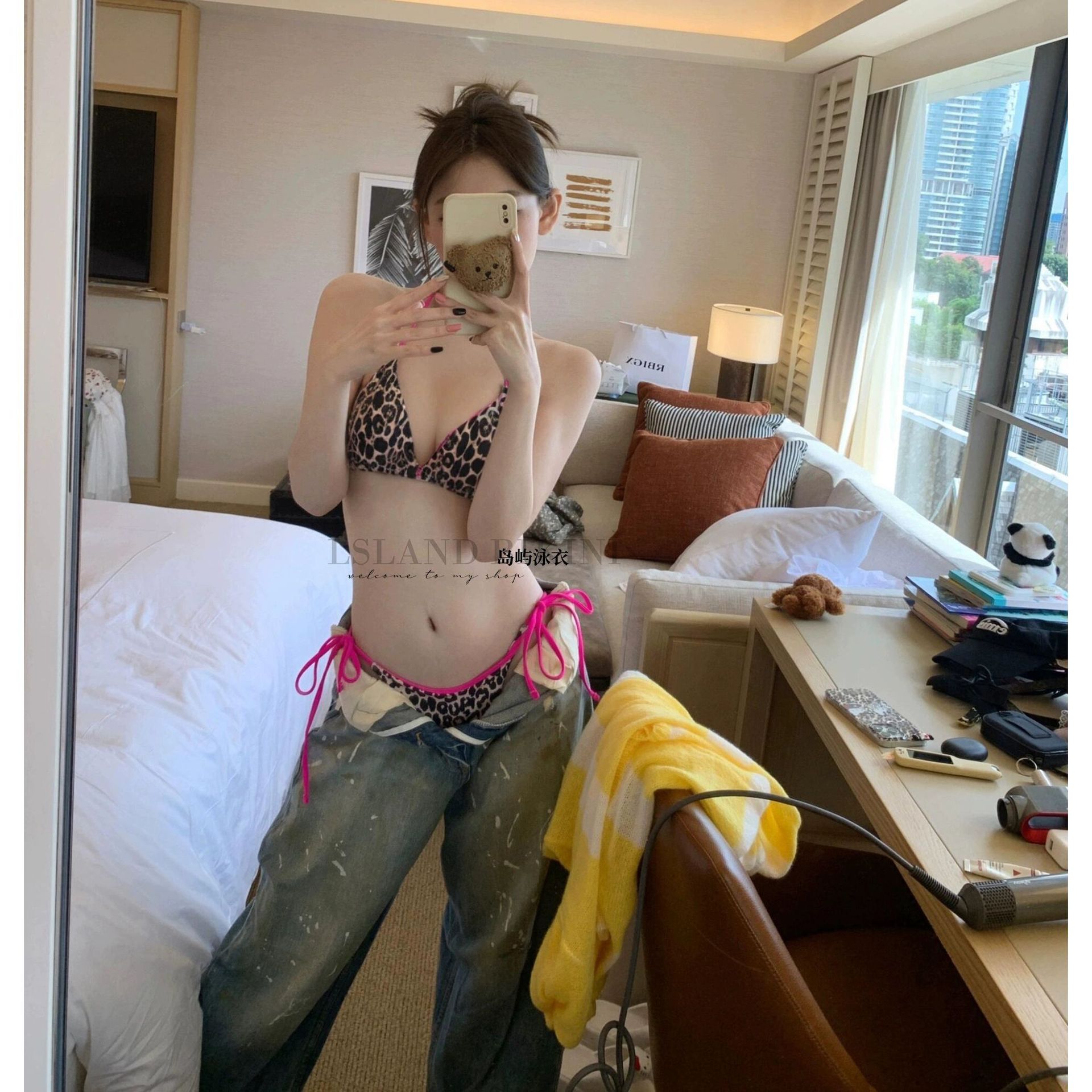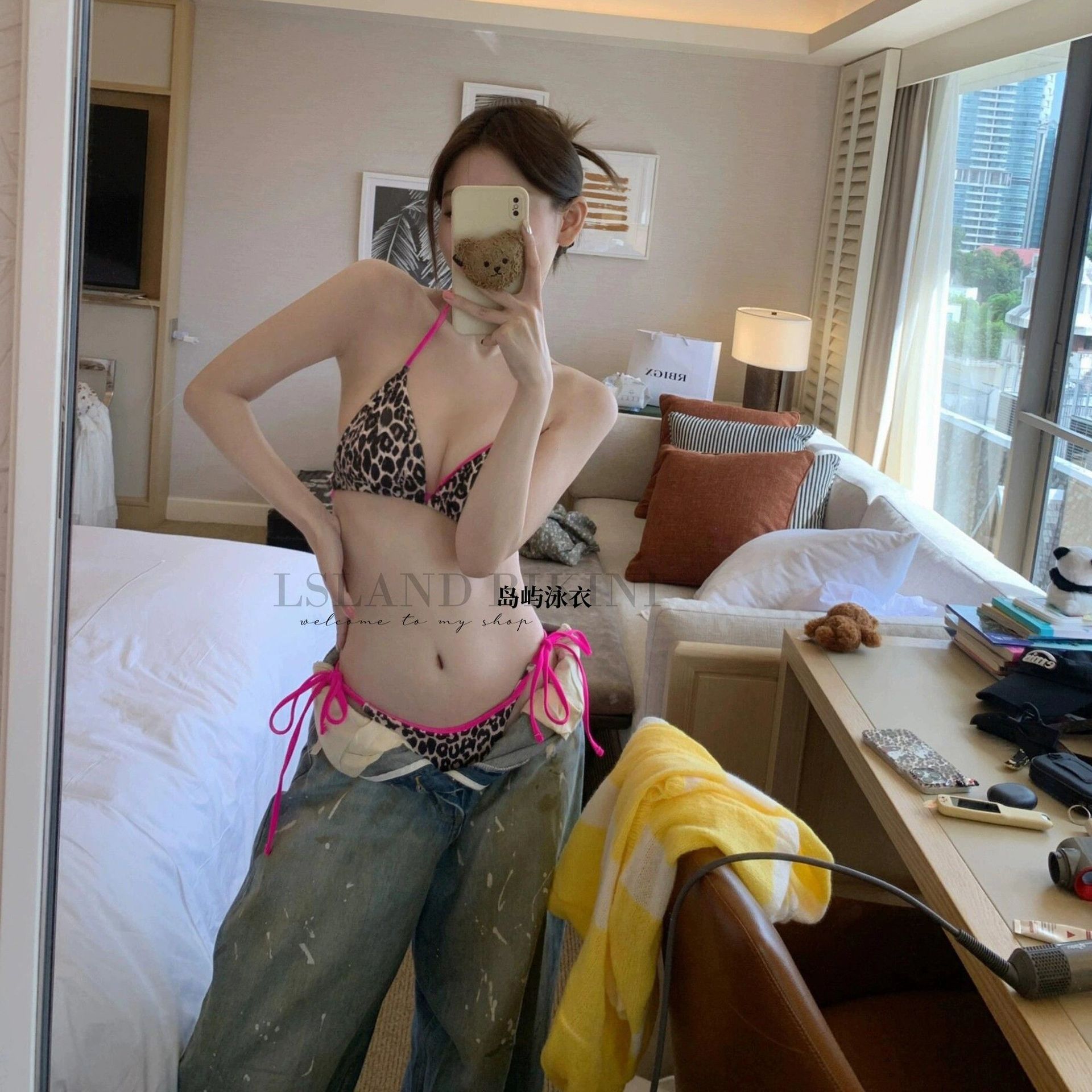 Европейский и американский сексуальный леопардовый цвет слитый бикини женский 2024 лето новая новая горячая девушка остров пляжный отдых сплит купальник