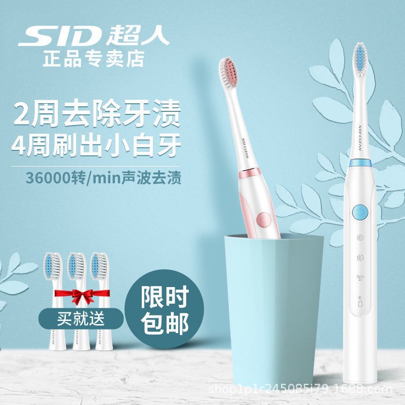 Электрическая зубная щетка SID/Superman Smart Sonic, 1 упаковка содержит 4 насадки, перезаряжаемая зубная щетка RT710, водонепроницаемая