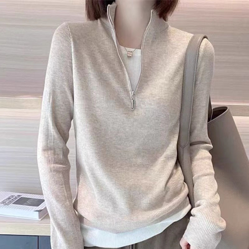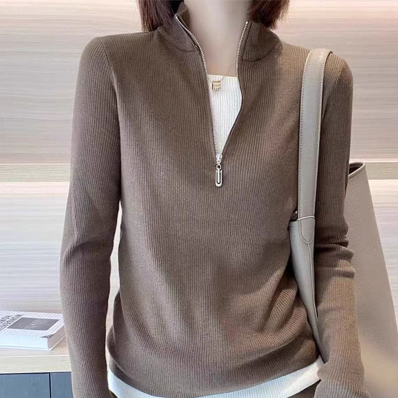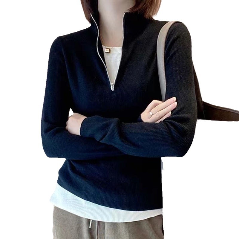 24 осенних и зимних поддельных двух сшитых полузастежек-молний воротник, имитация шерстяной трикотаж