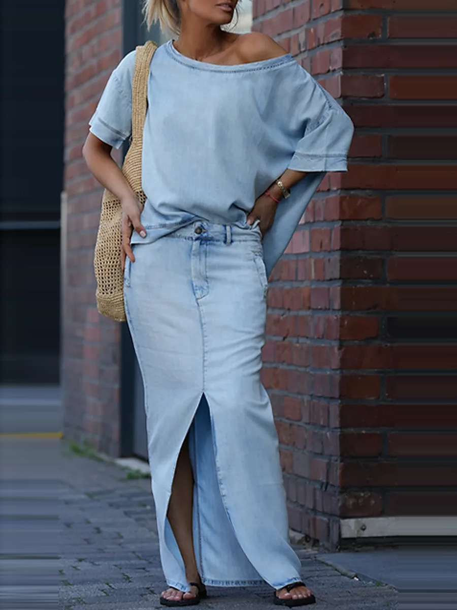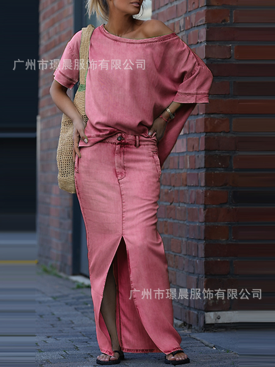 Главная страница > Летний костюм из двух предметов для женщин, экспортируемый из Европы и Америки на Amazon в 2025 году: топ и юбка с разрезом.