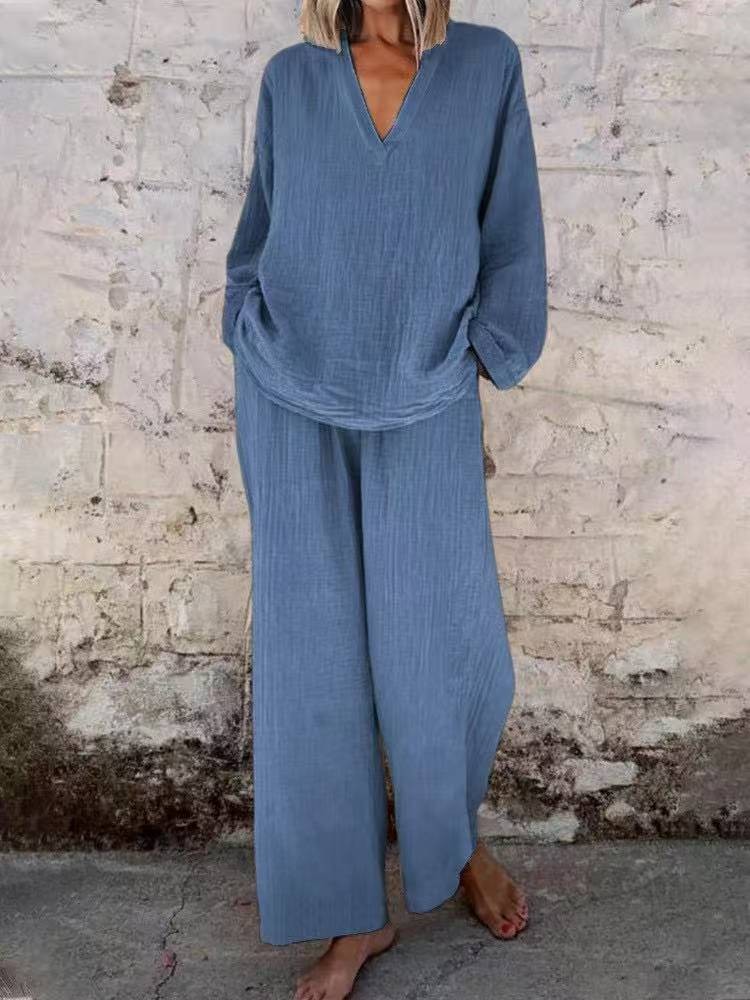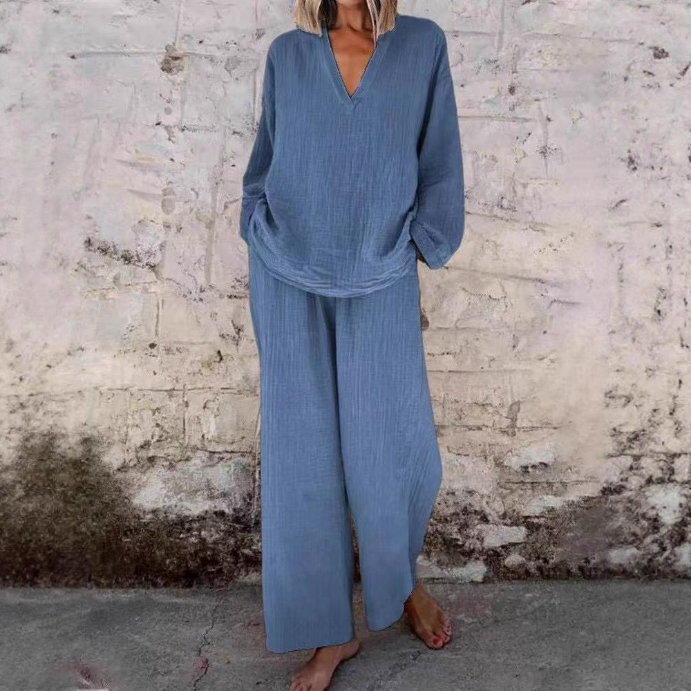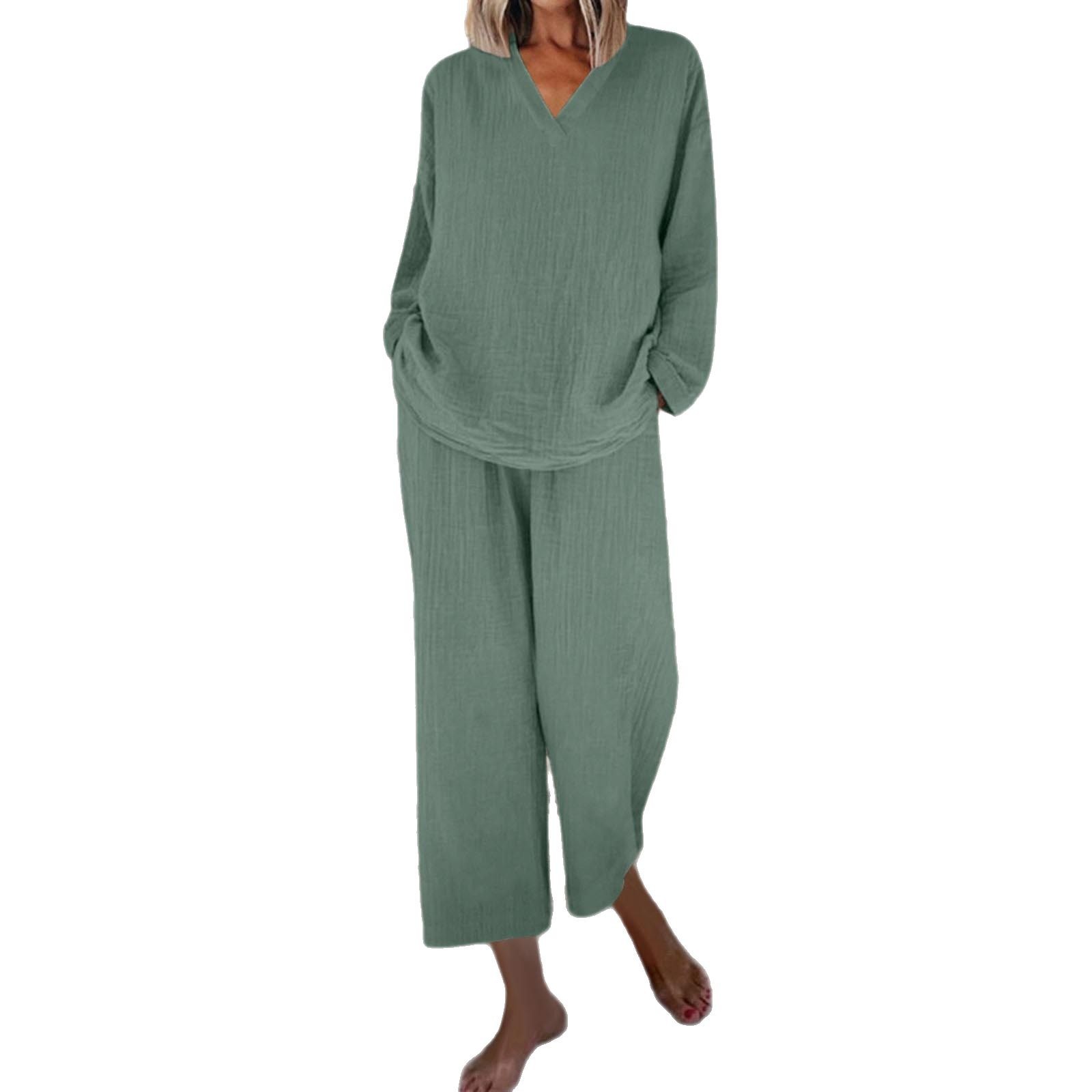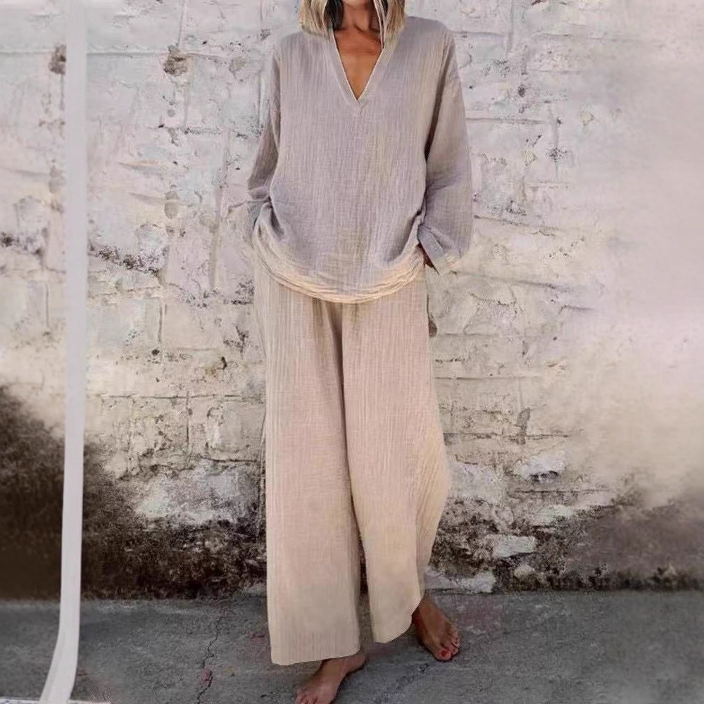 Главная страница > Независимая станция Трансграничная 2025 Лето Новый европейский и американский сплошной цвет женской моды повседневный костюм женский свободный набор из двух частей женский