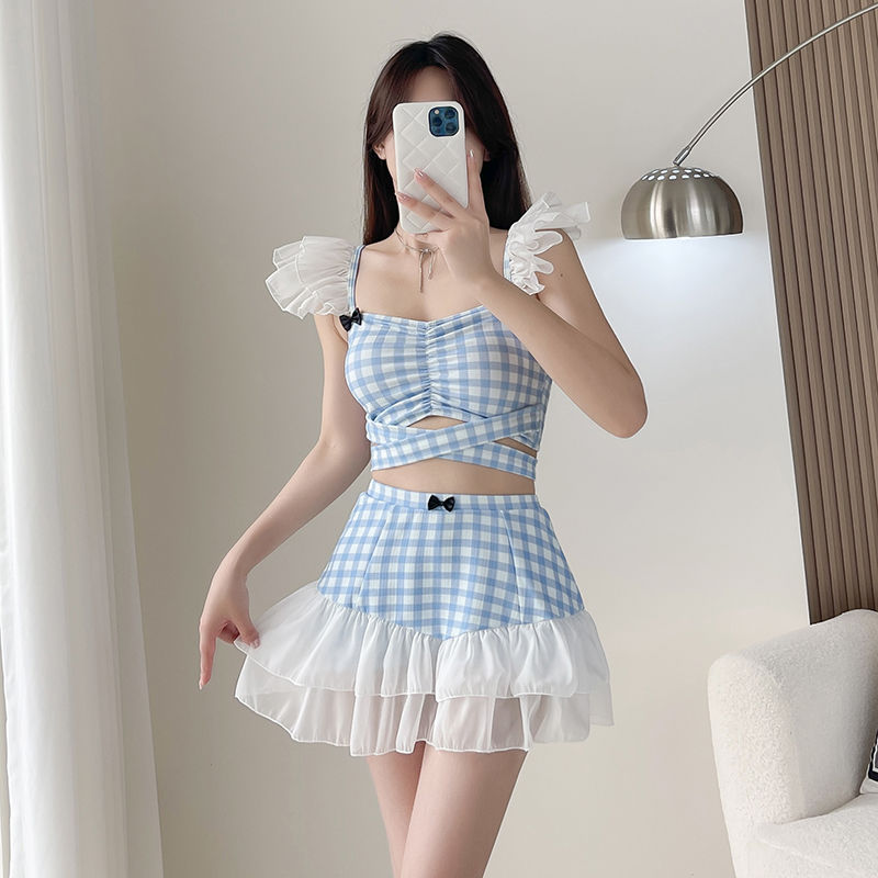 2025 новый сладкий стиль купальник женский боксер для маленькой груди студенческий горячий источник раздельная юбка курортный купальник