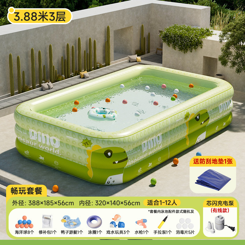 3.88m Longzai Green 3-слойный бассейн + новая проводная зарядка с вспышкой + забавный пакет