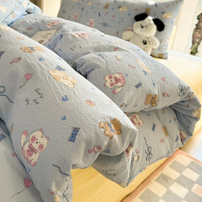 Главная страница > Свежий и простой двухслойный пододеяльник из пряжи в форме облака, цельное хлопковое постельное белье, простыня для студенческого общежития, пододеяльник, комплект из трех предметов.