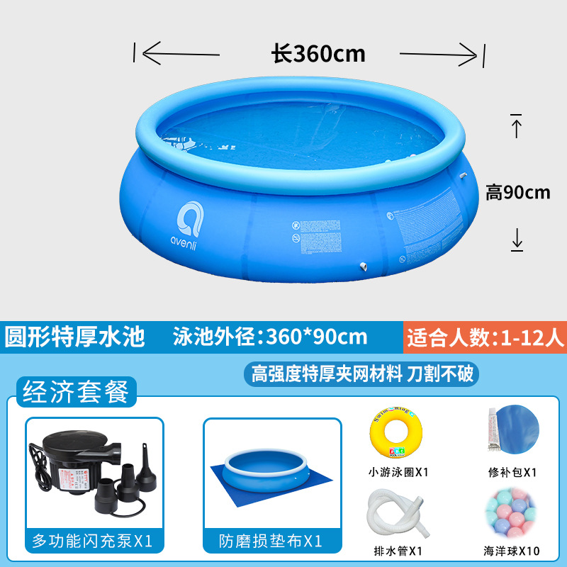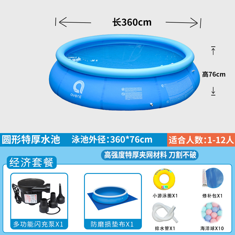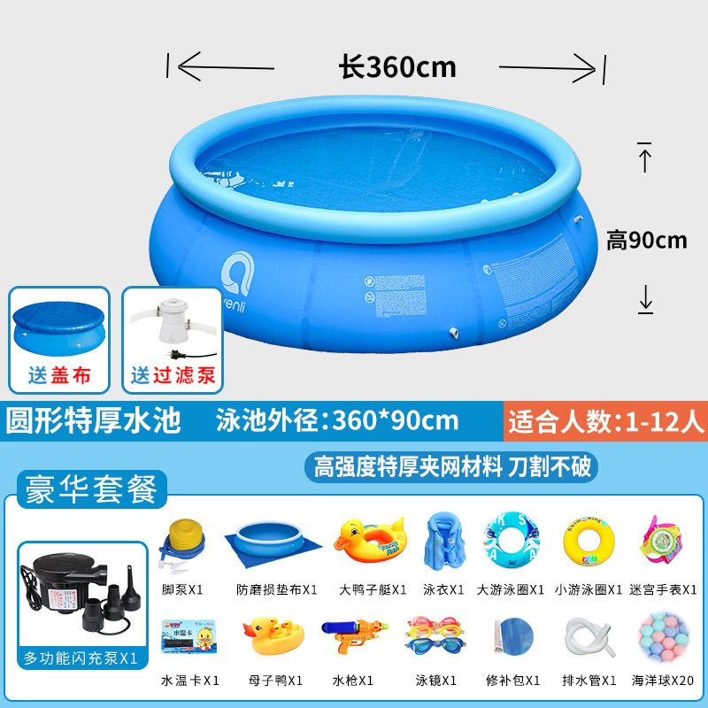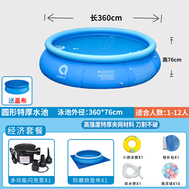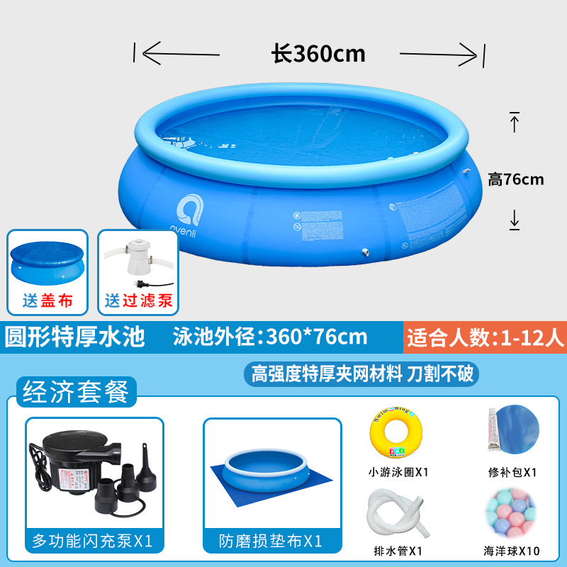Очень толстый: диаметр 360 * высота 76 см, экономичная упаковка + чехол + фильтрующий насос.