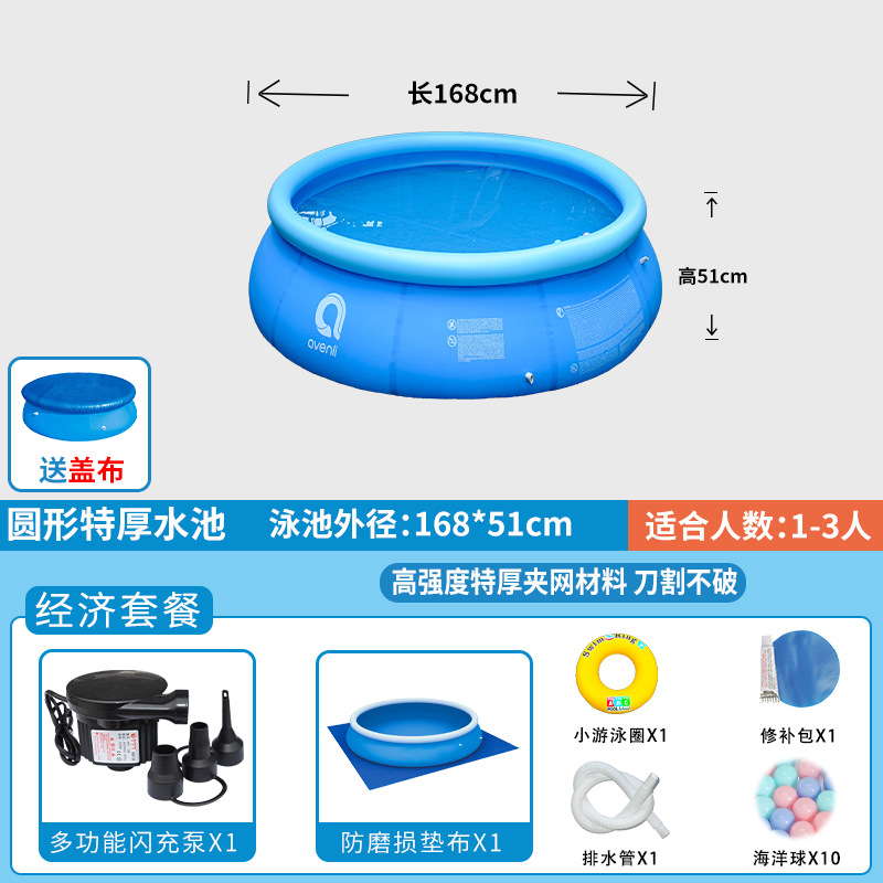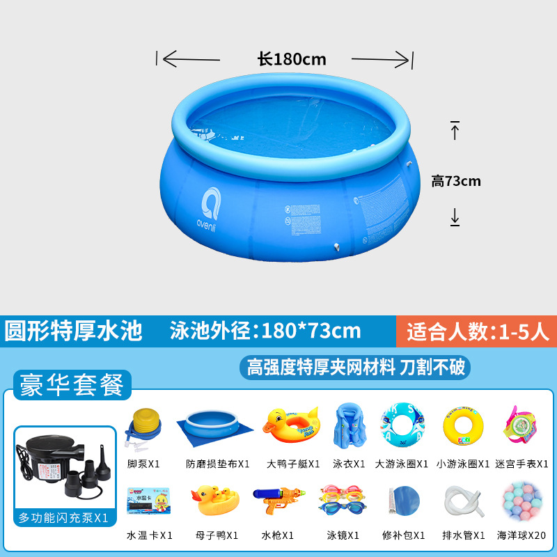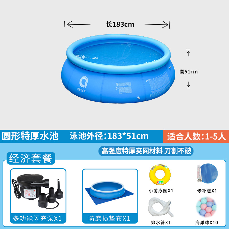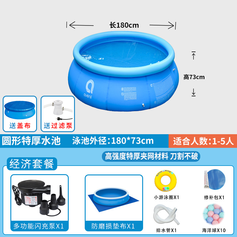 Очень толстый: диаметр 183 * высота 76 см, экономичная упаковка + чехол + фильтрующий насос.