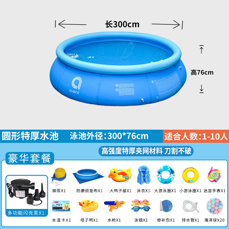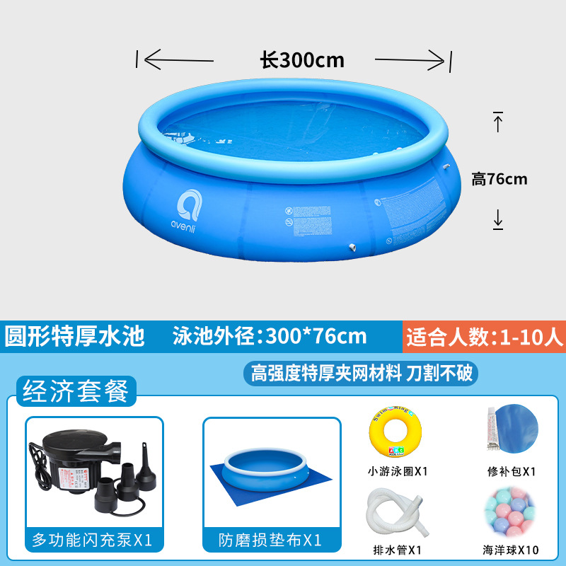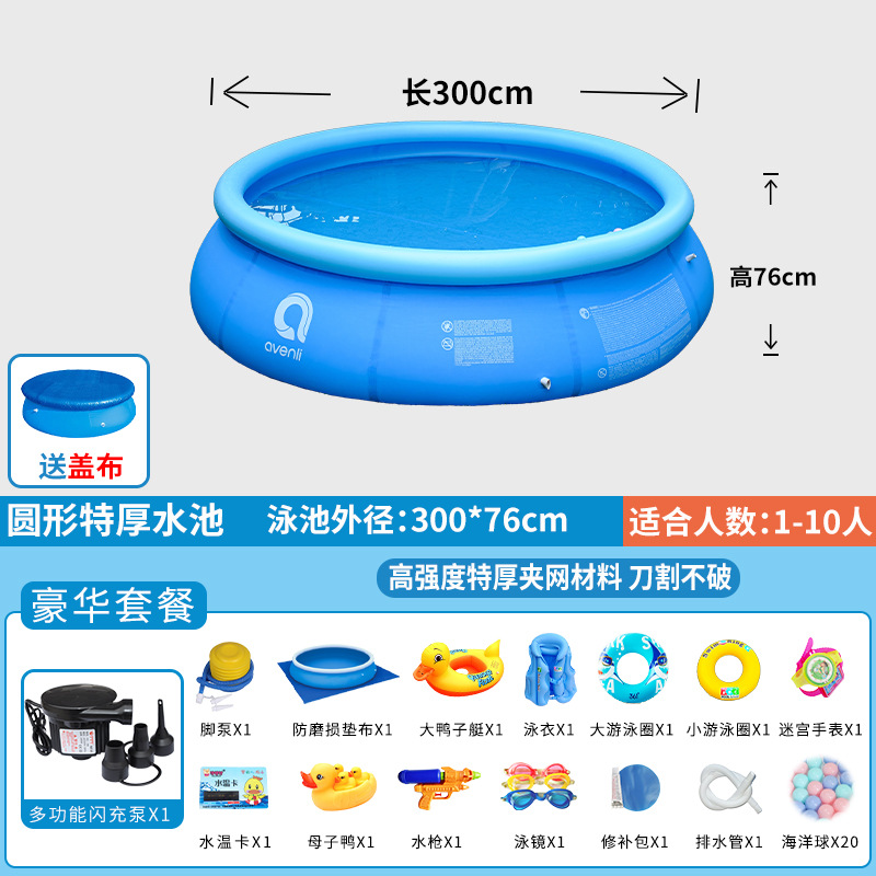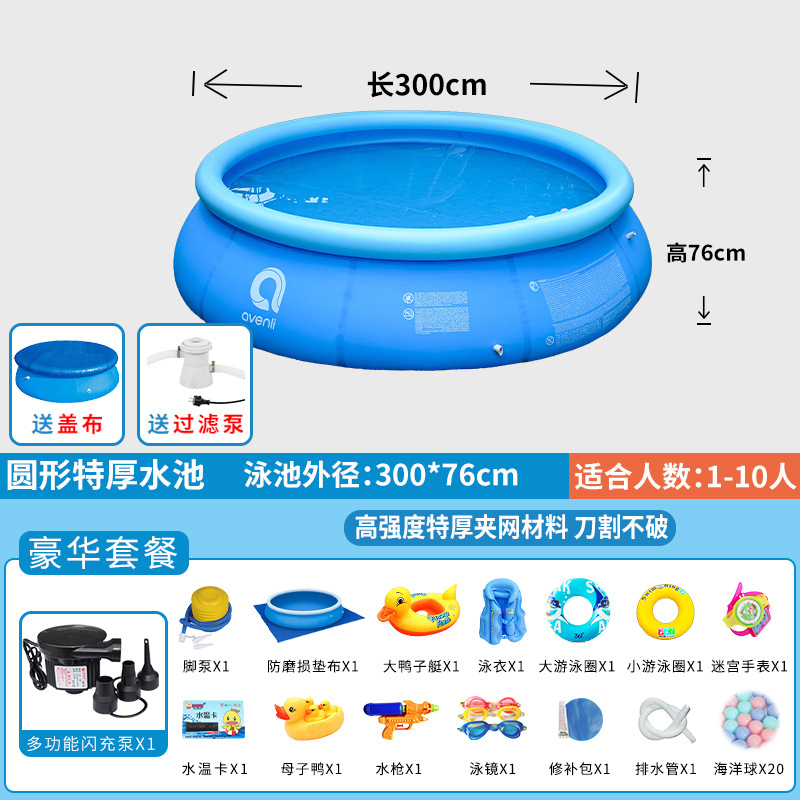 Очень толстый: диаметр 300 * высота 76 см, экономичная упаковка + чехол + фильтр-насос.