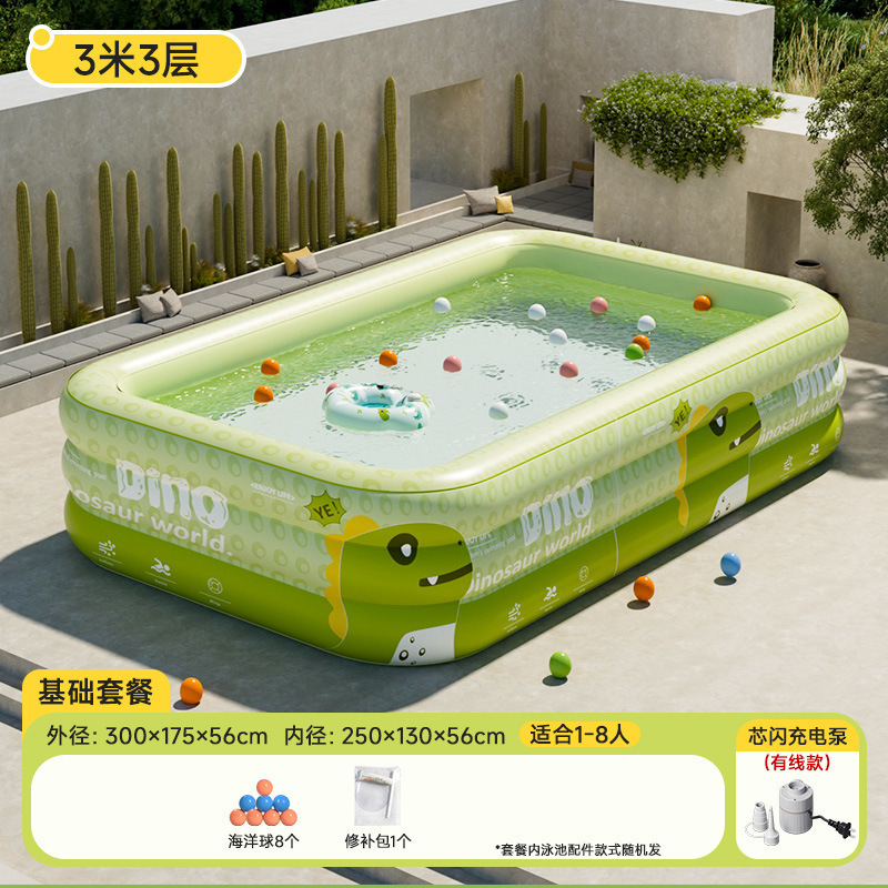 3m Трехслойный бассейн Longzai Green + новая проводная зарядка с вспышкой + базовый пакет