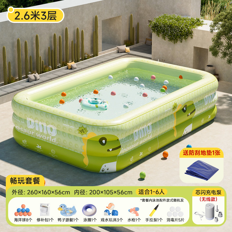 2.6m Longzai Green 3-слойный бассейн + новая проводная зарядка с вспышкой + забавный пакет