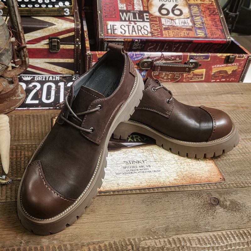Гуанчжоу Source Factory Мужская обувь первого слоя из воловьей кожи Парикмахерская Рабочая одежда Обувь Мужская обувь с низким верхом, увеличивающая рост, обувь с большим носком