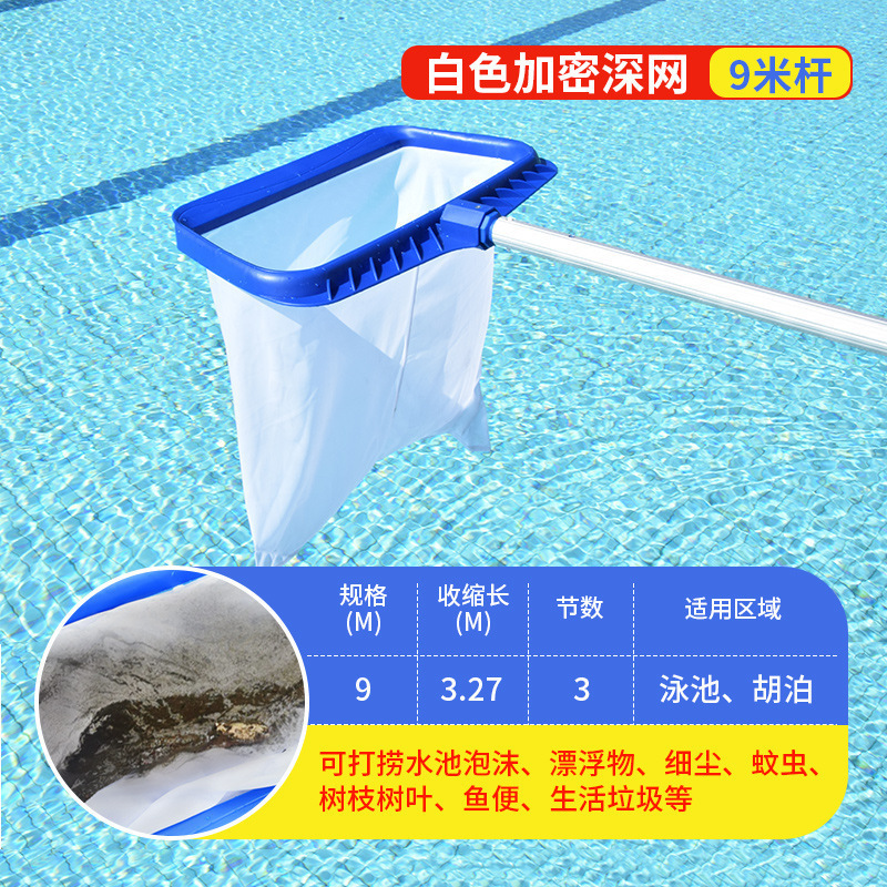 Улучшенная синяя глубоководная сеть + 9m опоры для сбора листьев и мусора и быстрой фильтрации воды.