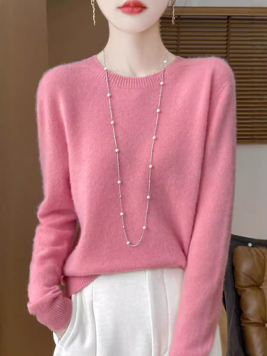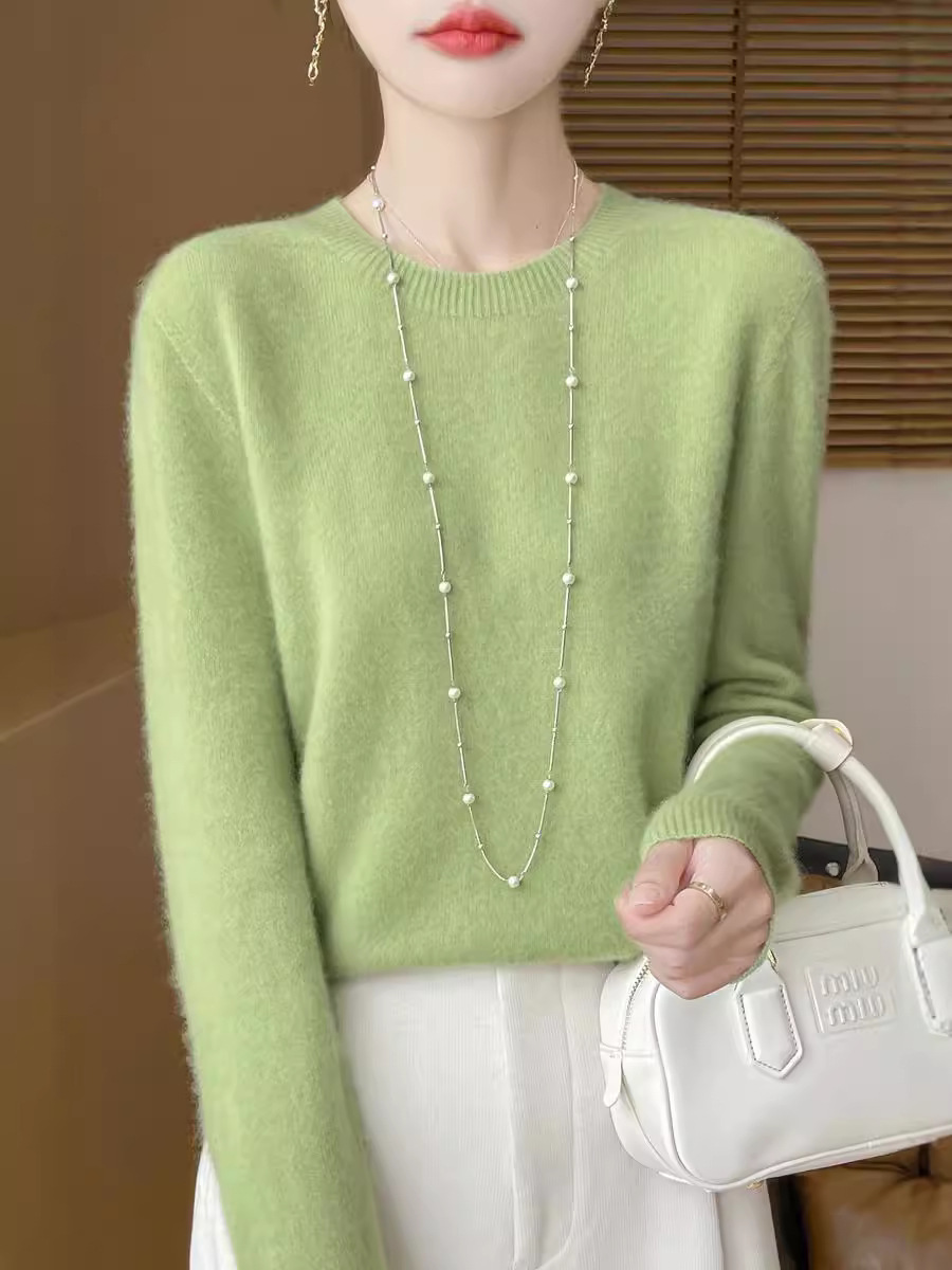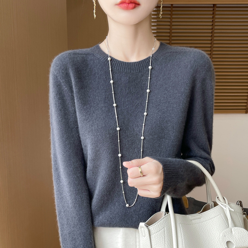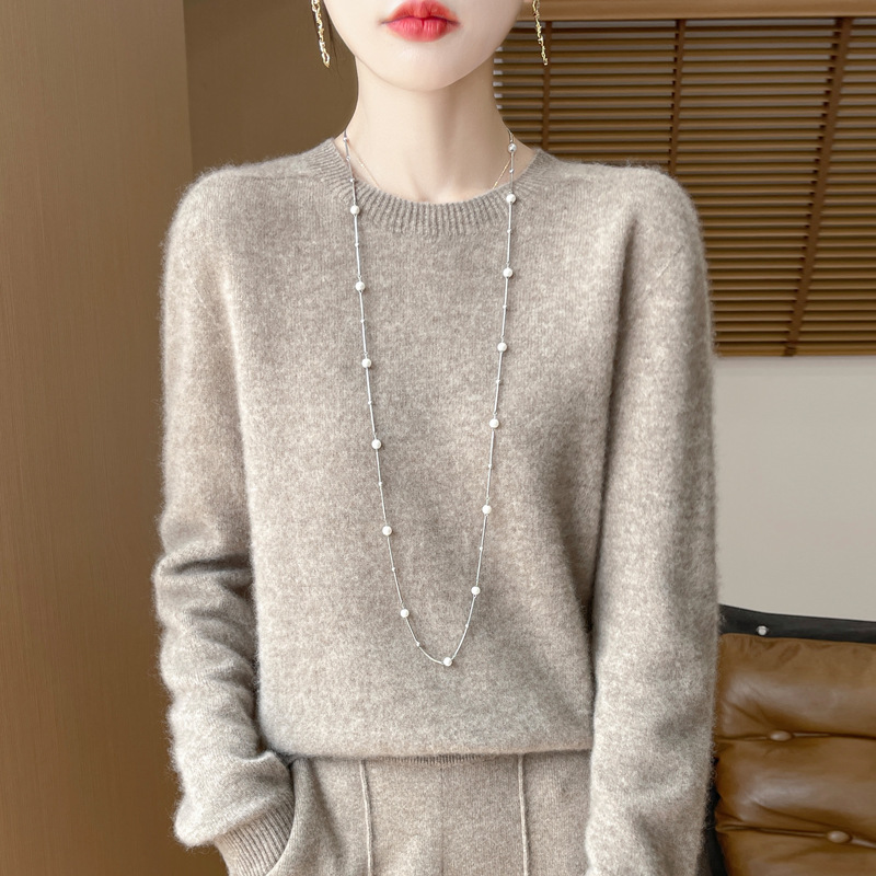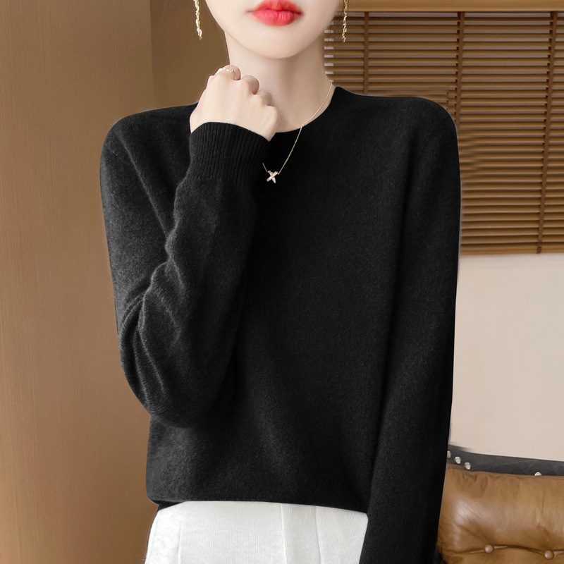 Главная страница > Бесшовная передняя одежда трикотажный свитер женский с круглым вырезом пуловер свободный нижний свитер осень зима новый сплошной цвет свитер женский оптовый