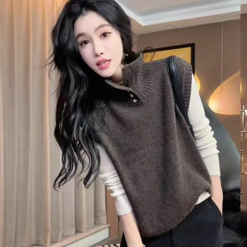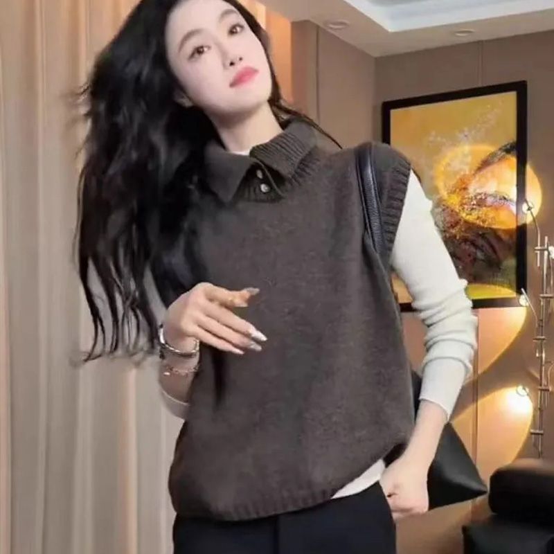 Главная страница > Французский многослойный однотонный модный женский свитер-жилет, весенне-осенний ленивый стиль с высококачественным трикотажным внутренним жилетом.