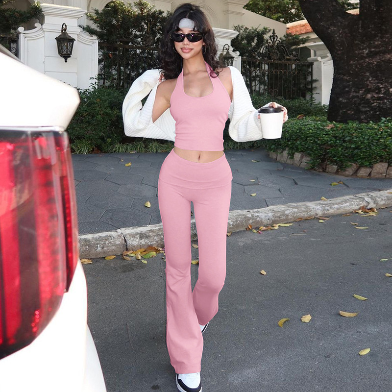 Женская одежда Amazon, лето 2025, новая мода, уличный стиль, топ-бандо без спинки, облегающие длинные брюки, оптом.