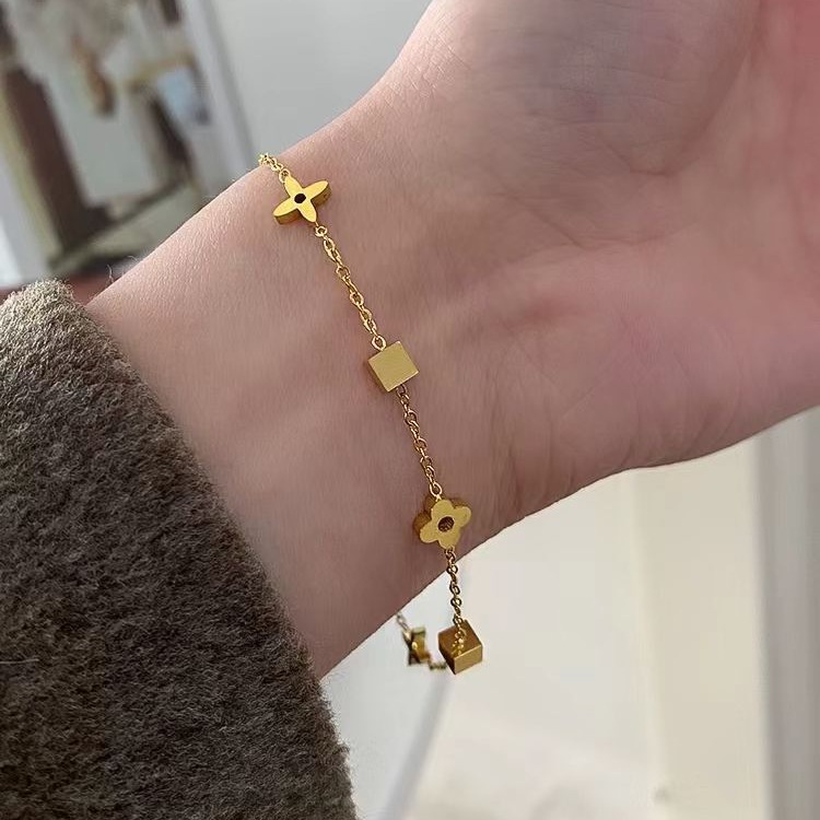 Новый квадратный браслет с цветком, изысканные украшения для рук в корейском стиле, легкая роскошь, высококачественный, невыцветающий браслет с камелией
