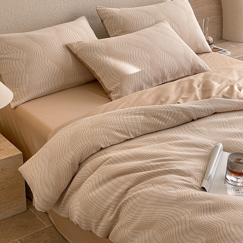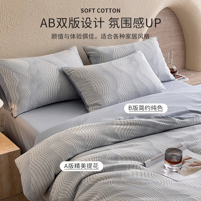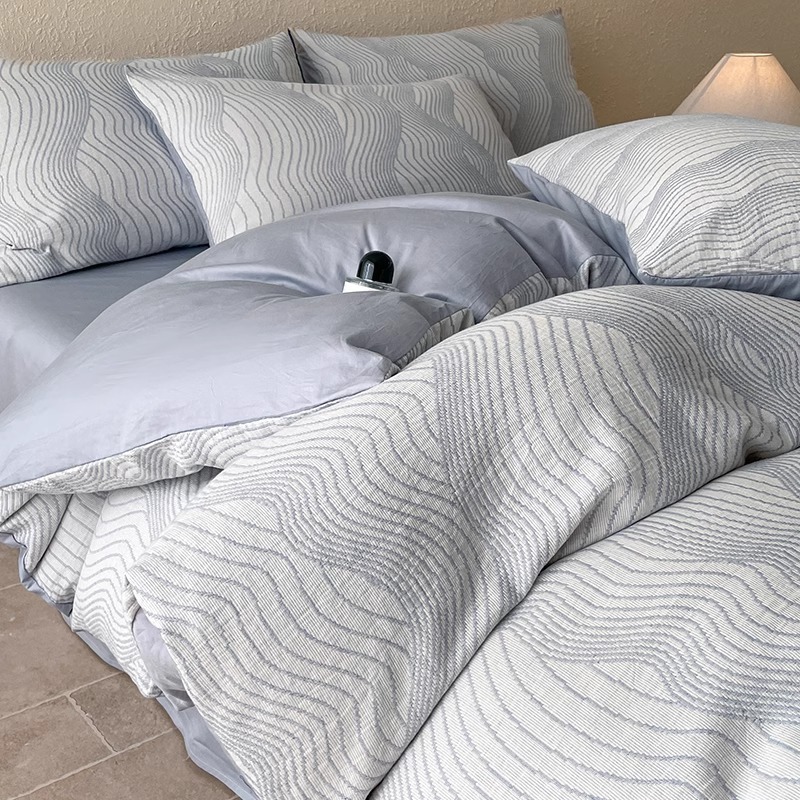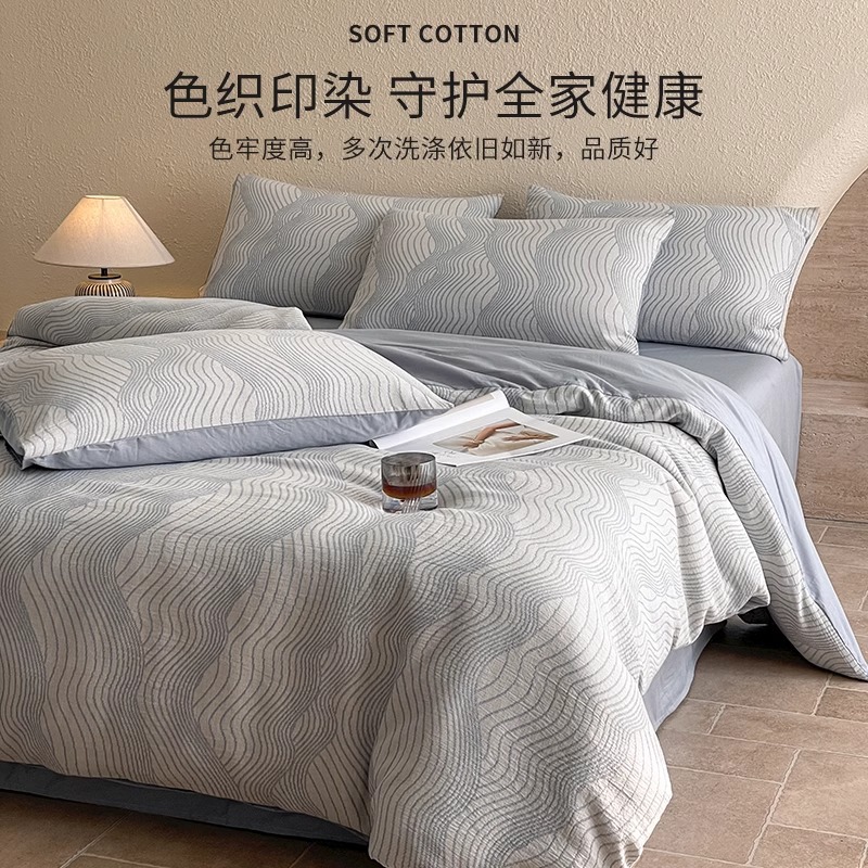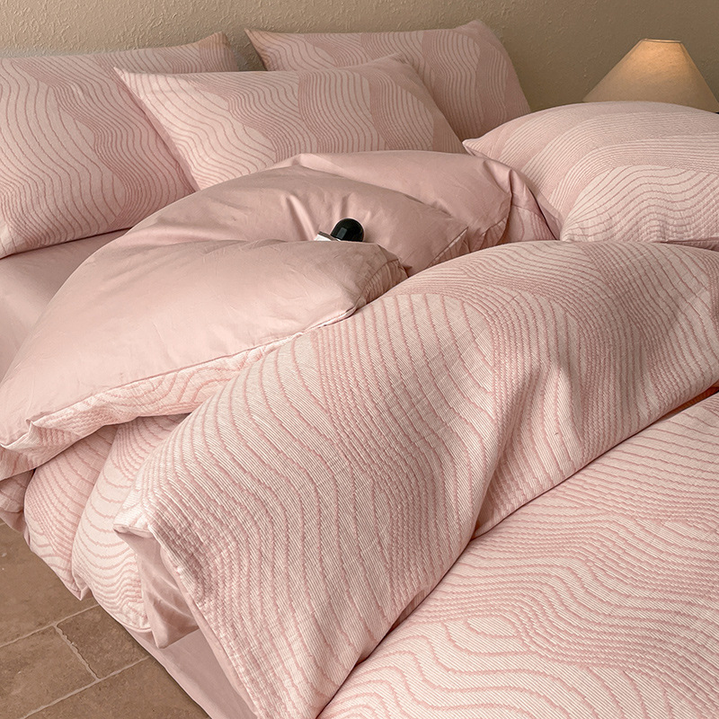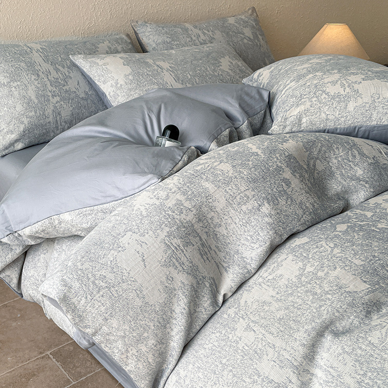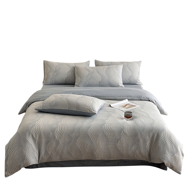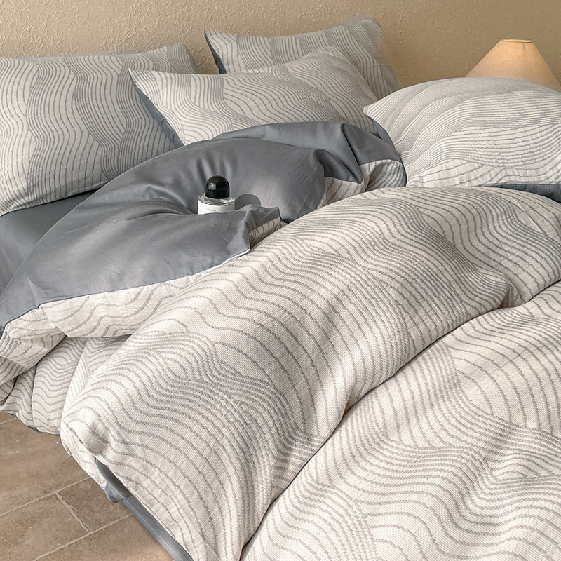 Главная страница > Комплект постельного белья из чистого хлопка в скандинавском стиле, жаккард, четыре предмета: пододеяльник из трехслойной пряжи класса А, простыня, натяжная простыня, комплект постельного белья