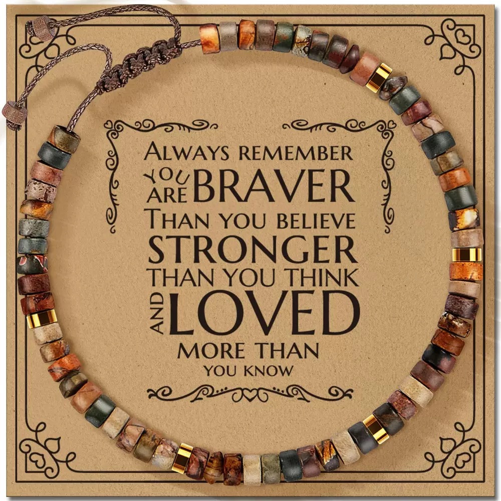 Главная страница > Браслет из натурального камня ручной работы, плетеный браслет ручной работы, браслет из бусин из камня Пикассо, плетеный браслет из веревки с карточкой.