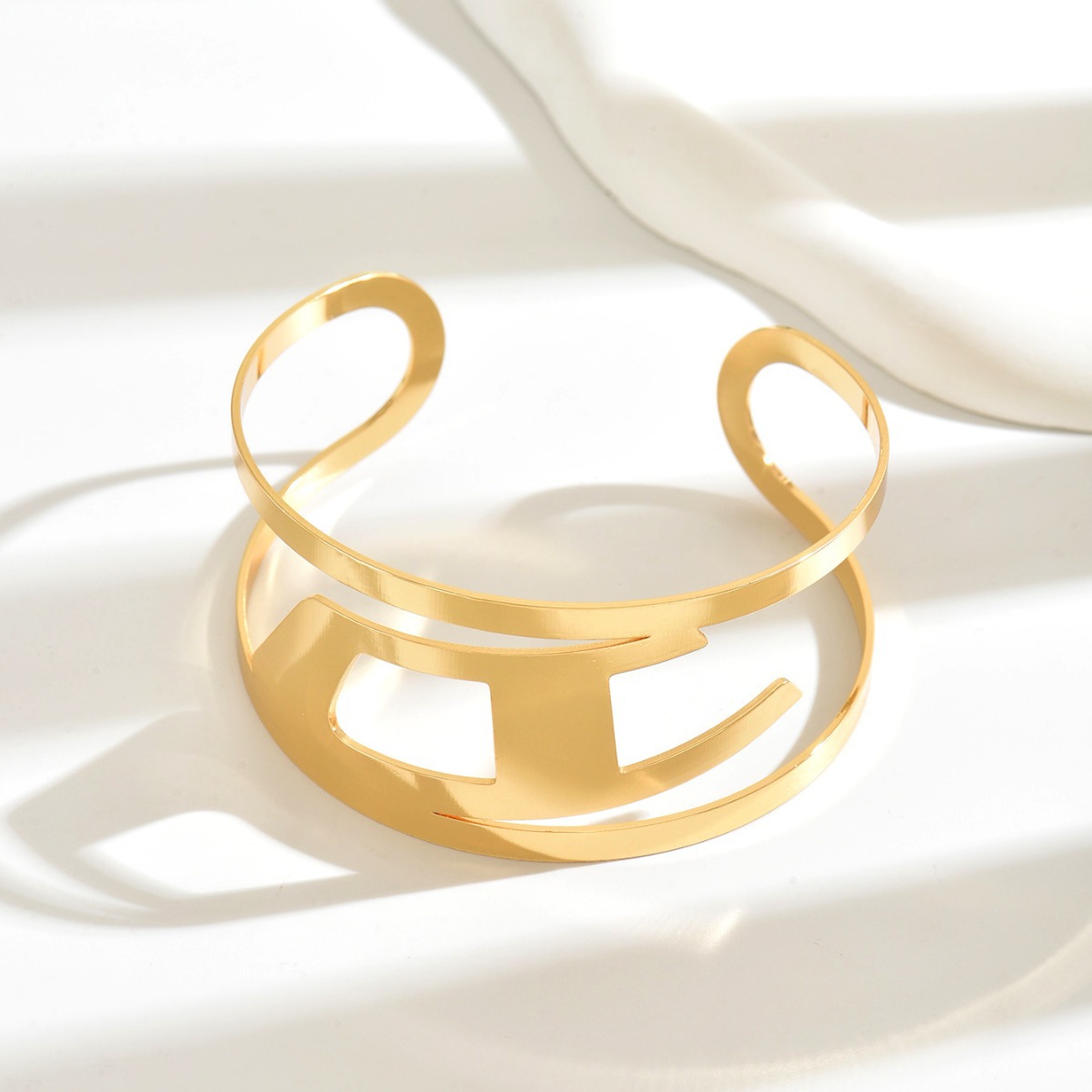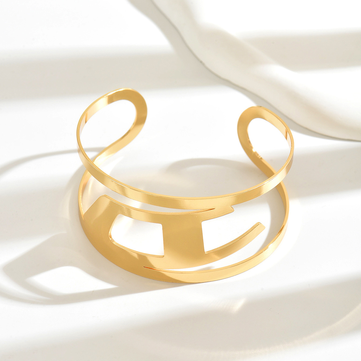 Фабрика прямых продаж Сладкий и пряный вырезает D-буквенный браслет женский дикий индивидуальный металлический глянцовый открытый орнамент