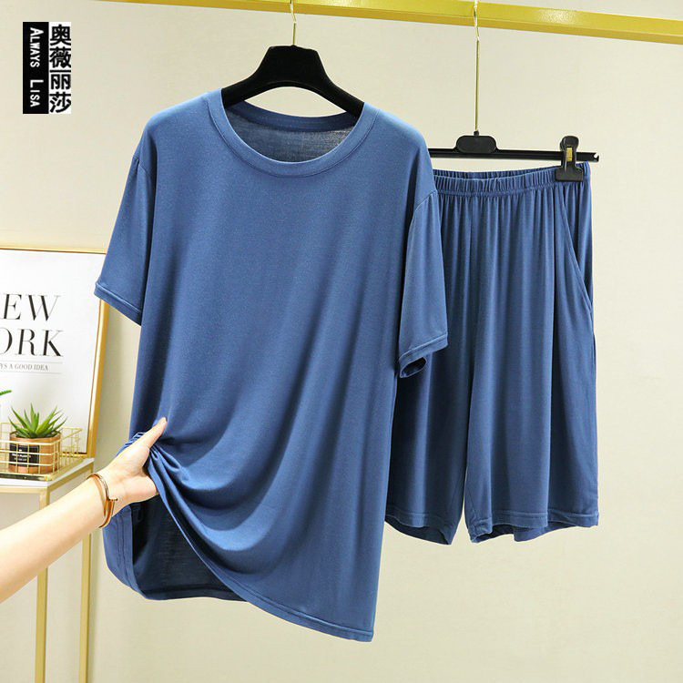 Главная страница > Модальная футболка с короткими рукавами, мужской костюм, летняя Тонкая Повседневная Свободная универсальная домашняя пижама для похудения больших размеров с круглым вырезом