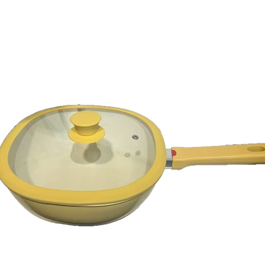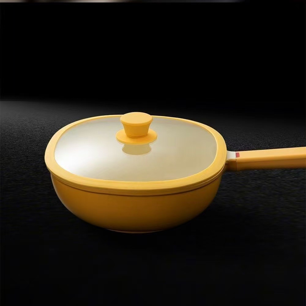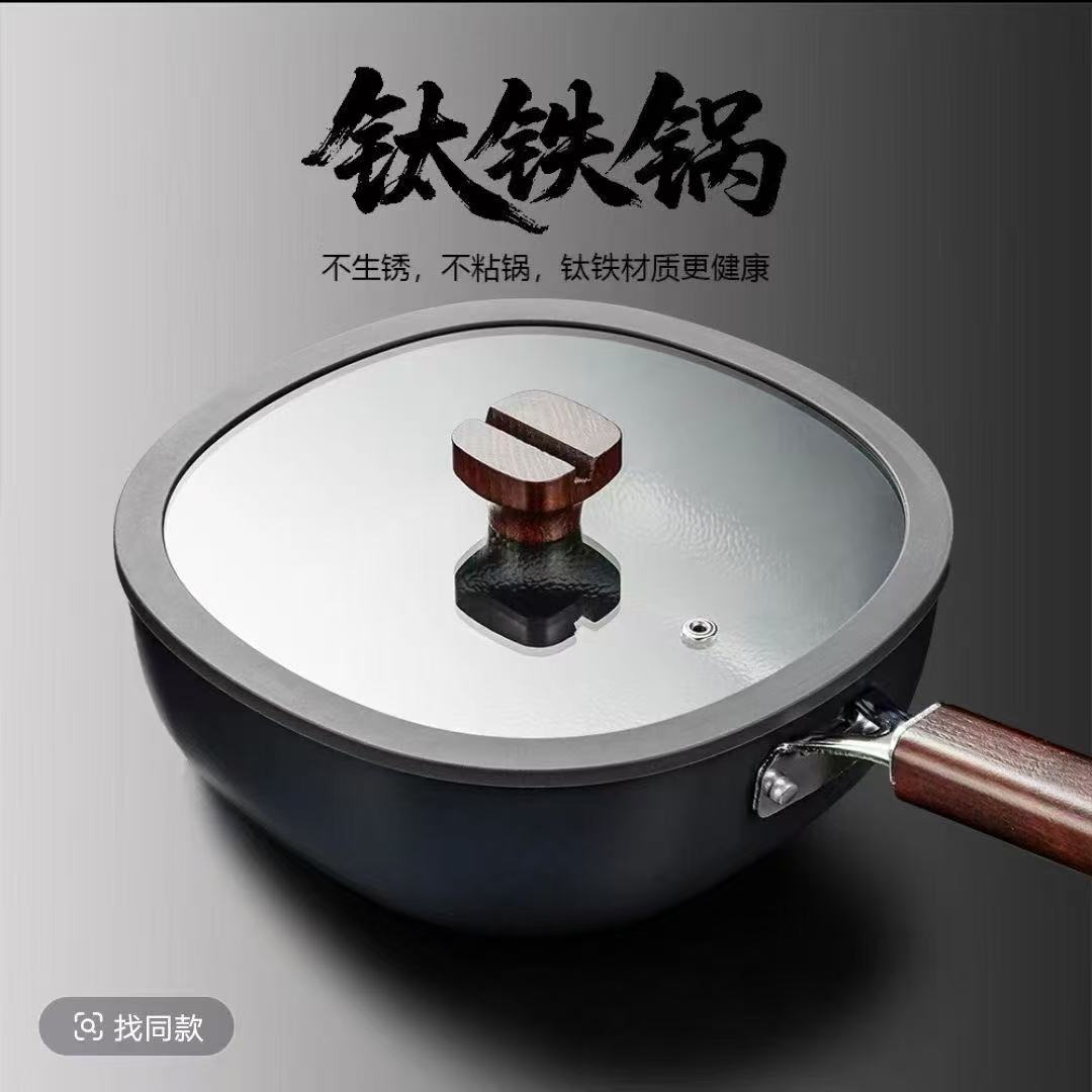 Новая квадратная сковорода вок с бесступенчатым покрытием из титана, антипригарная, с ручкой из массива дерева, глубокая сковорода для жарки, кастрюля для супа, кастрюля для молока, подарочная кастрюля