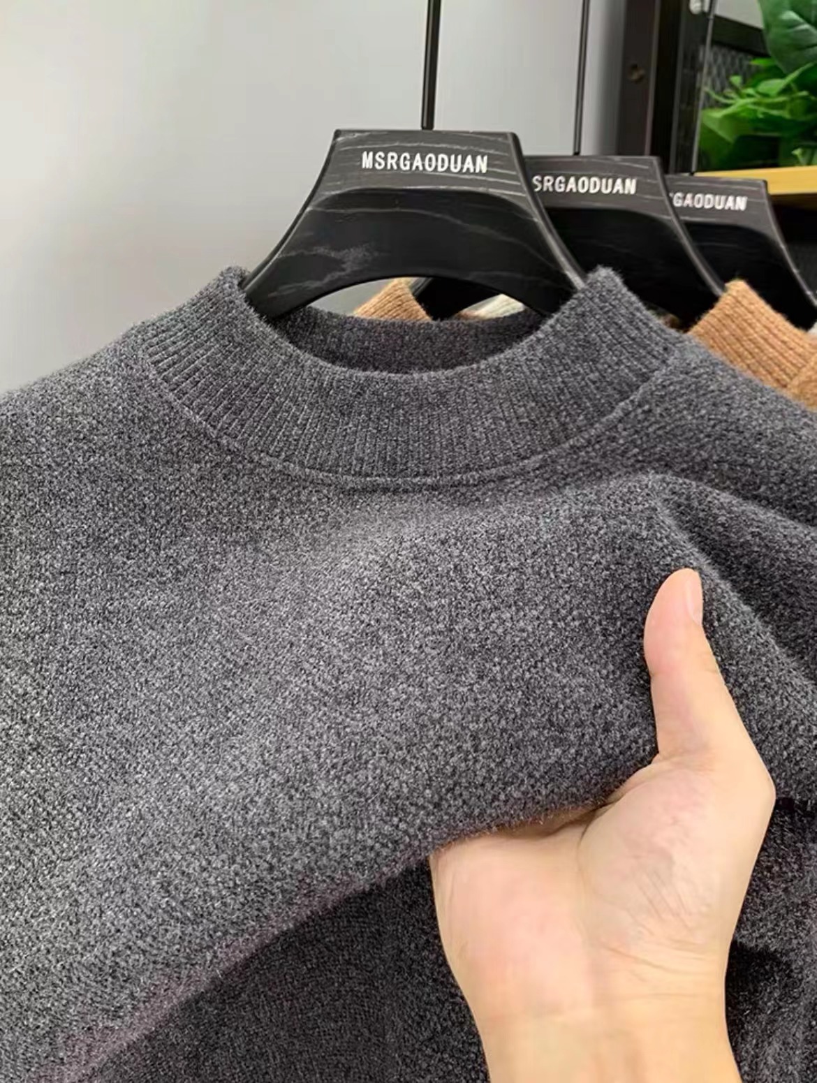 Главная страница > Цельный бархатный свитер, мужской зимний из синели, теплый утепленный вязаный свитер с флисовой подкладкой, пуловер с высоким воротом, топ, Базовая рубашка