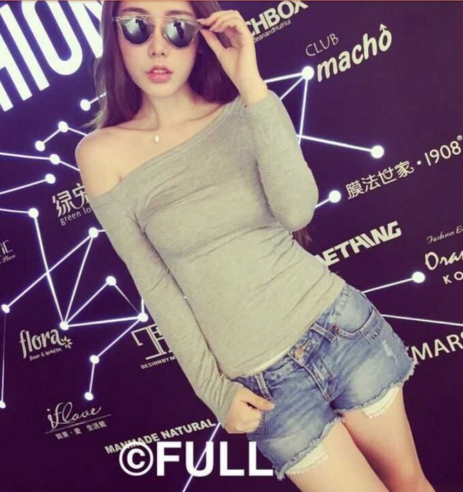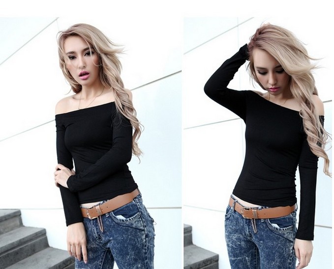 Главная страница > Осенне-зимняя футболка с длинными рукавами, женская сексуальная приталенная Базовая рубашка с плоским воротником, универсальная Однотонная футболка