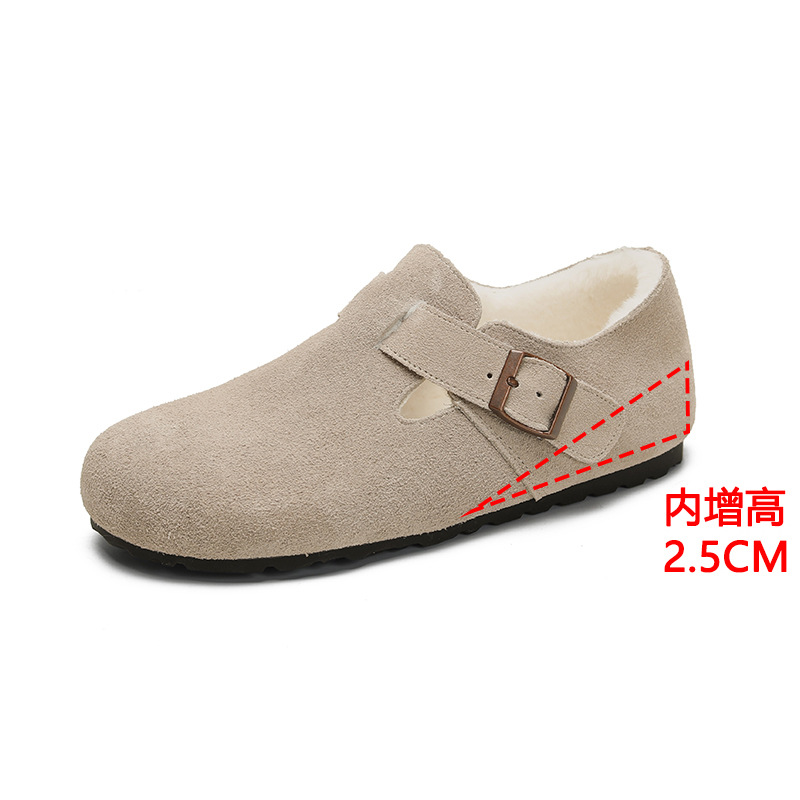 Женские зимние теплые туфли Birkenstock из натуральной кожи с мехом, на толстой подошве, с круглым носком, увеличивающие рост, на меху, без застежек.