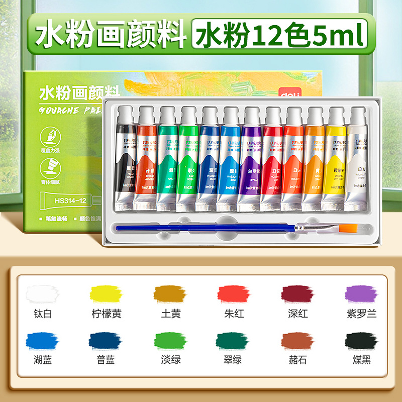 Главная страница > Набор гуашевых красок Deli, инструменты для рисования для начинающих, 12 цветов, 24 цвета, детский художественный класс, акварельная краска, раскраска