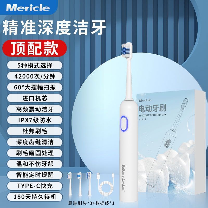 Главная страница > Электрическая зубная щетка Mericle с перекрестным зеркалом, умная кнопка для взрослых, пятискоростная USB-зарядка, ультразвуковая зубная щетка с мягкой щетиной