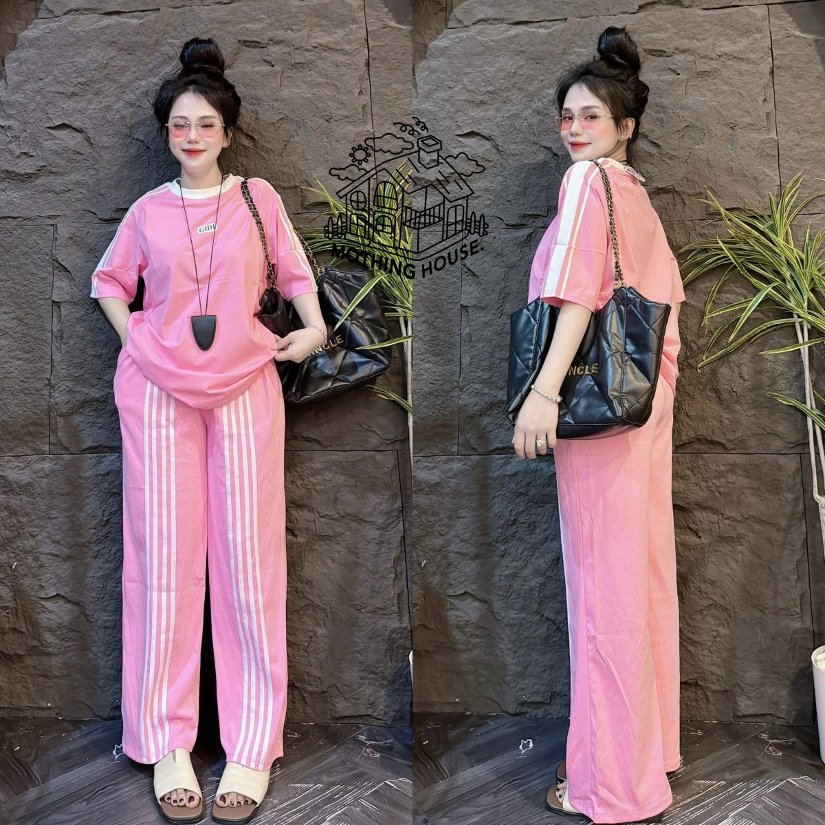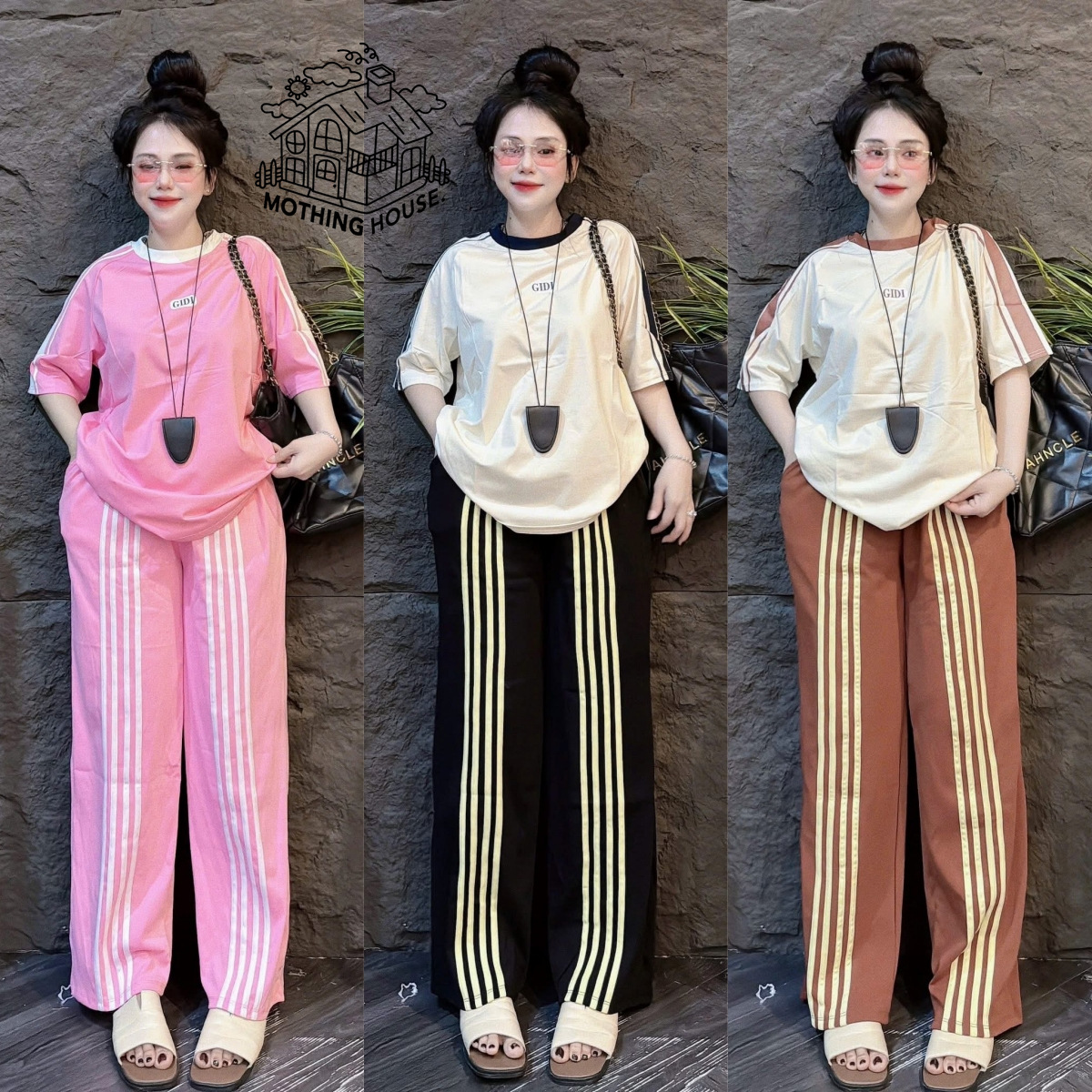 Главная страница > Летний женский костюм в корейском стиле, свободный, с короткими рукавами, широкими брюками в три полосы, модный комплект из двух предметов.