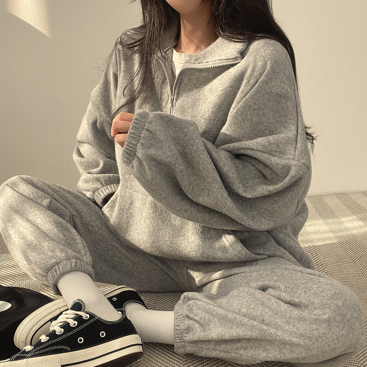 Главная страница > Плюс бархатный костюм, женские утолщенные брюки с длинными рукавами, два предмета, свободная осенне-зимняя модная спортивная одежда для отдыха, Корейская версия