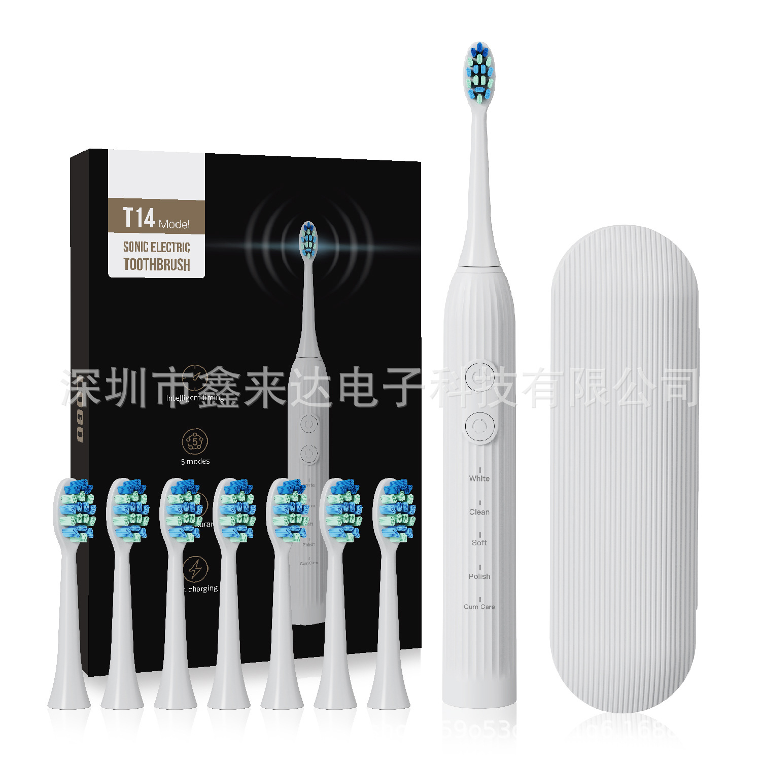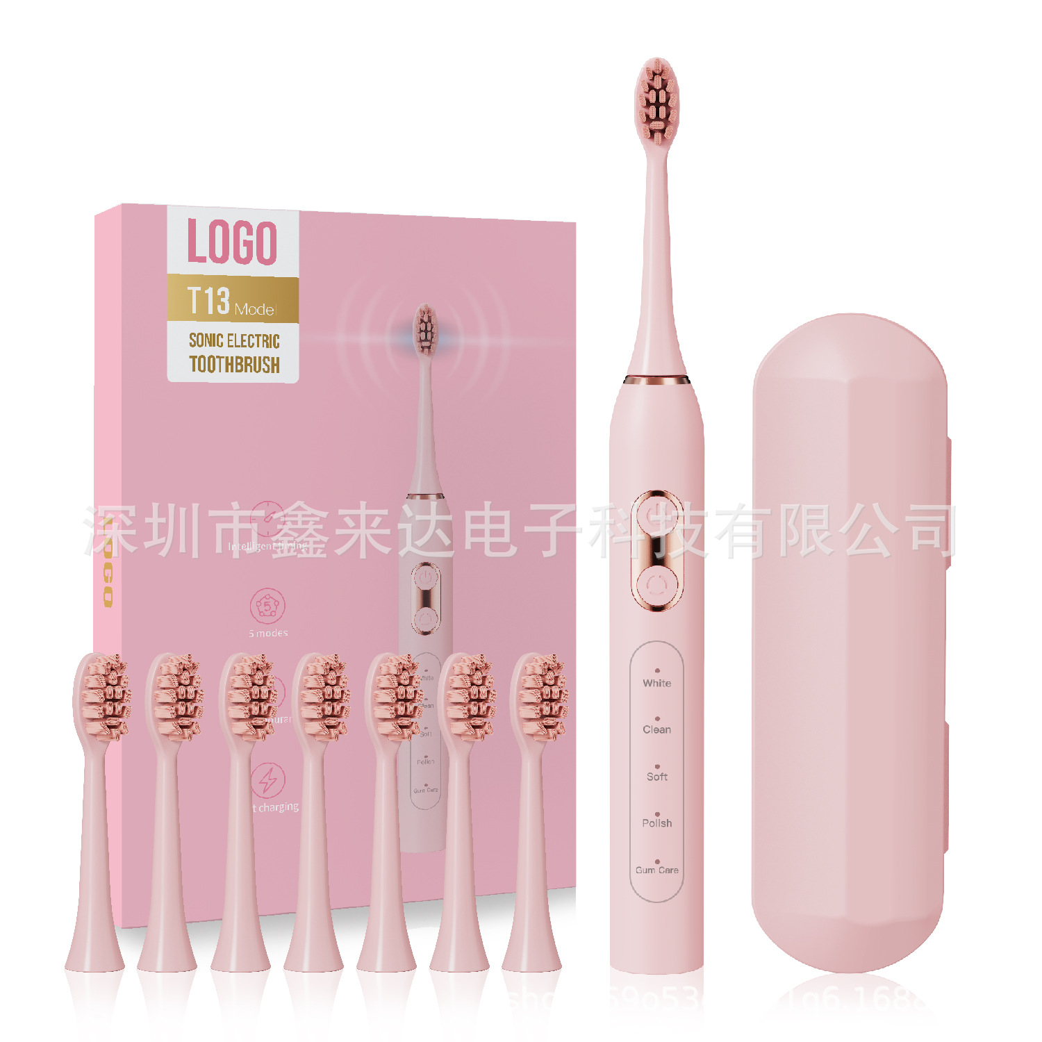 Звуковая электрическая зубная щетка для взрослых пар, перезаряжаемая мягкая зубная щетка, популярная в трансграничных продажах, с восемью насадками и футляром для хранения, для путешествий
