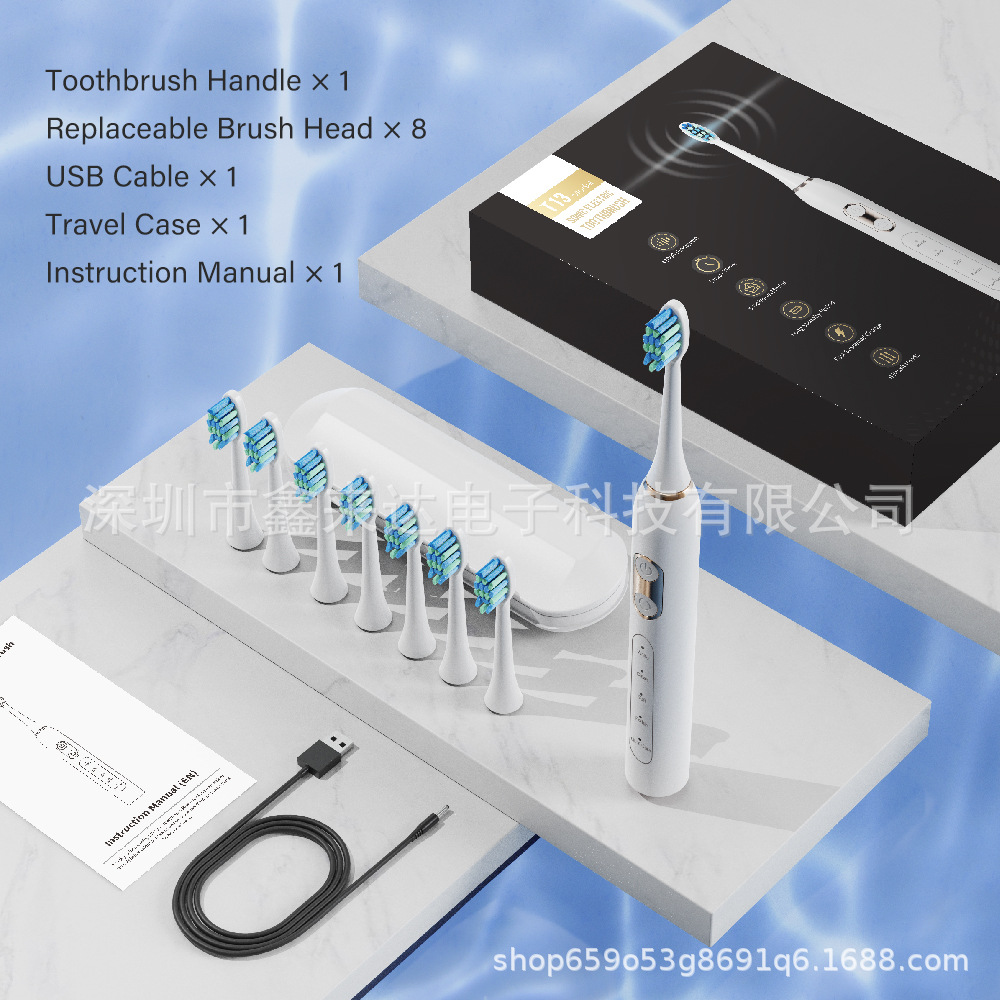 Главная страница > Звуковая электрическая зубная щетка для взрослых пар, перезаряжаемая мягкая зубная щетка, популярная в трансграничных продажах, с восемью насадками и футляром для хранения, для путешествий