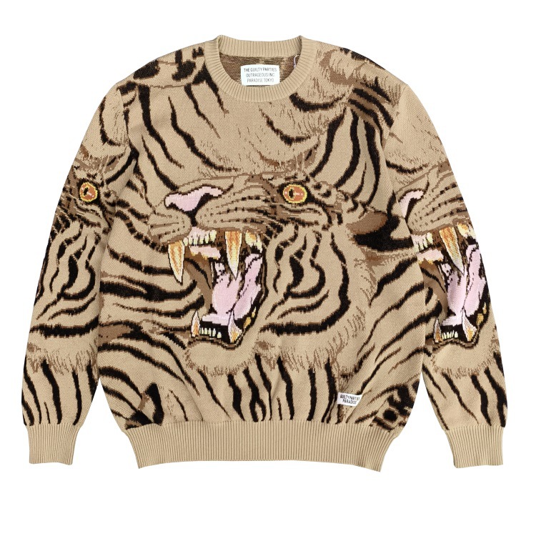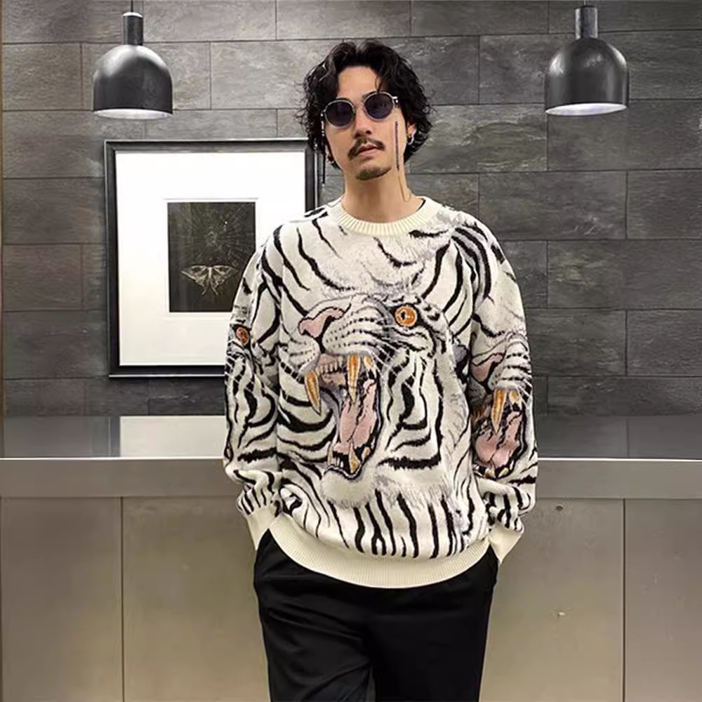Главная страница > GUILTYPARTIES TIGER 22SS Новый TIMLEH TIGER Тотем хлопчатобумажная пряжа круглый вырез вязаный свитер