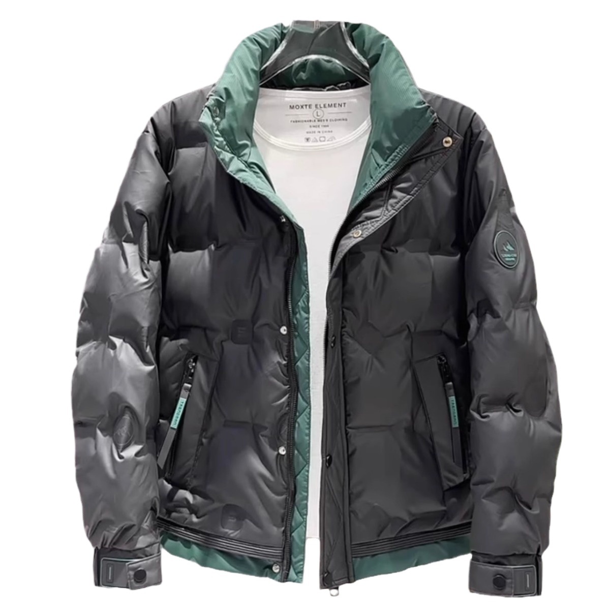 Главная страница > Мужская пуховая куртка с воротником-стойкой, новая зимняя модель, утолщенная, с цветовыми блоками, теплая, повседневная короткая куртка, модный стиль, национальный стандарт 50