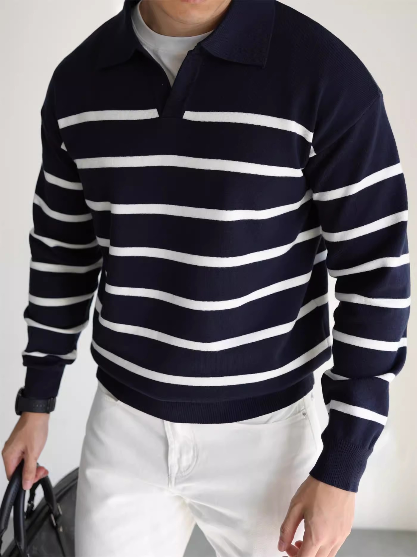 Главная страница > Дизайн с V-образным вырезом в полоску свитер мужской осенний и зимний повседневный свитер с длинными рукавами для мальчиков с тонким вырезом