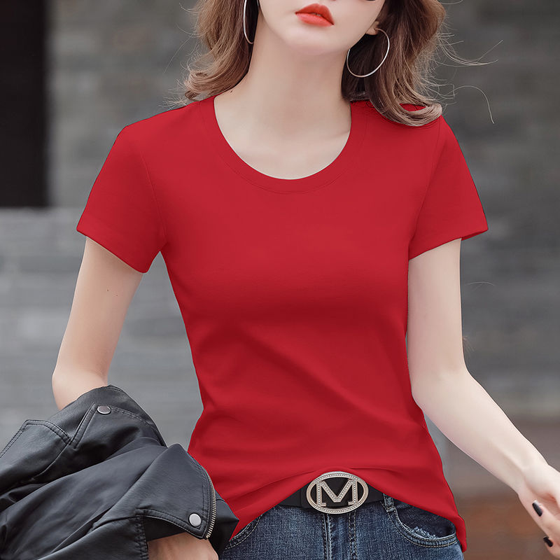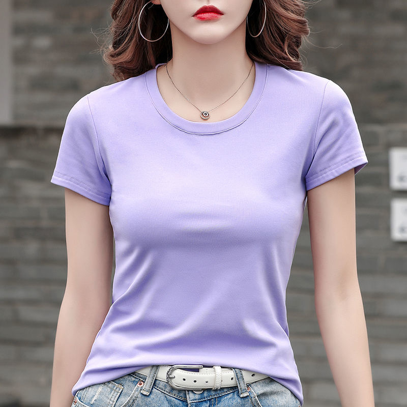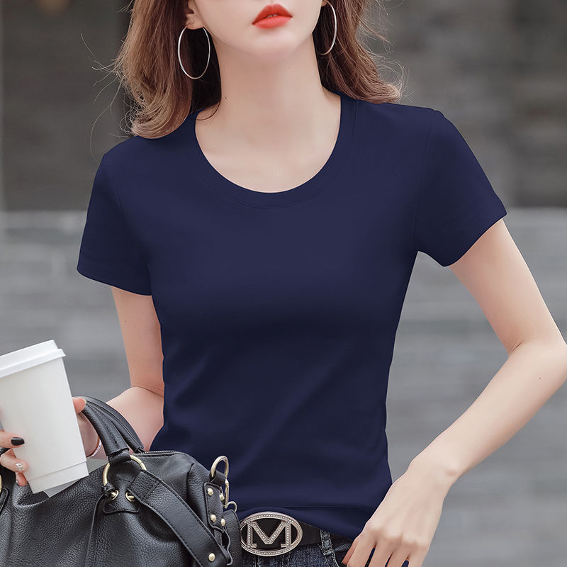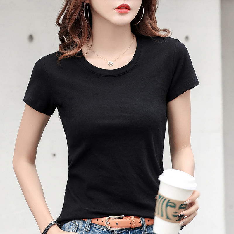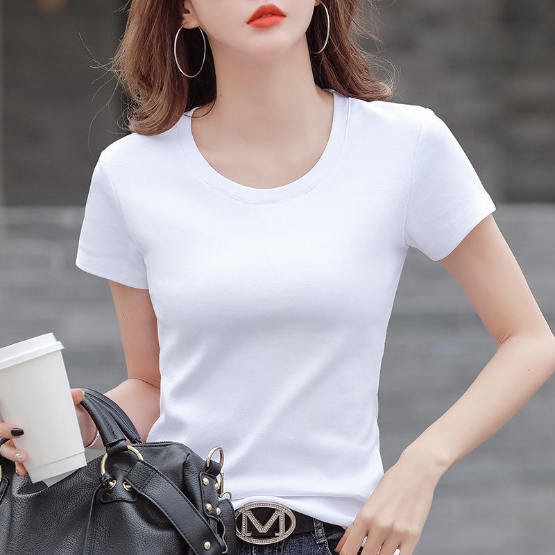 Главная страница > Летняя белая футболка с короткими рукавами, тонкая, сплошной, круглый, студенческая корейская нижняя рубашка