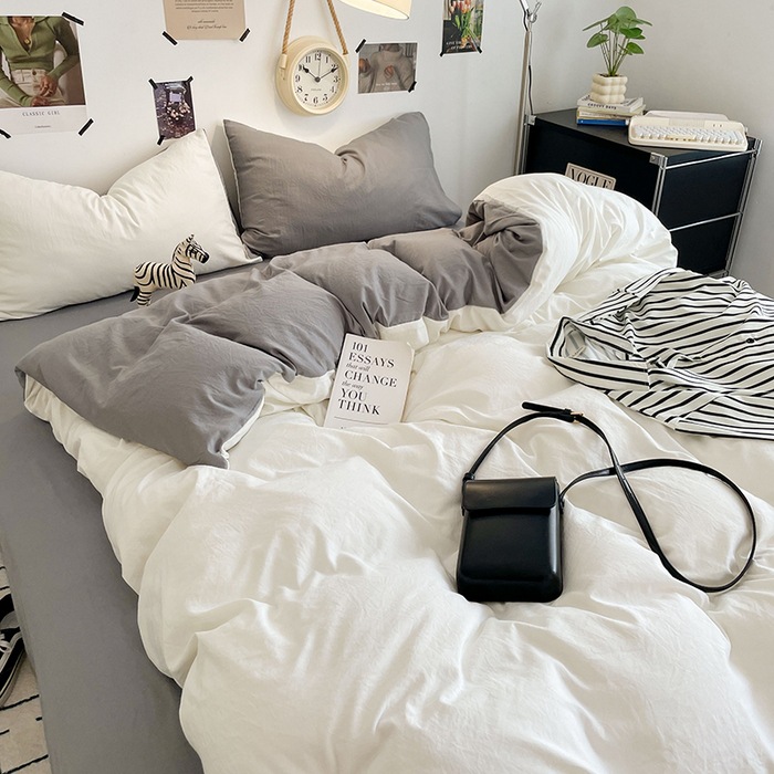 Главная страница > Новый стиль, неокрашенный, ультрамягкий, из стираного хлопка, комплект постельного белья из четырех предметов, комплект постельного белья из трех предметов для студенческого общежития.