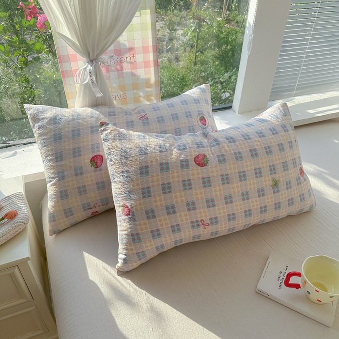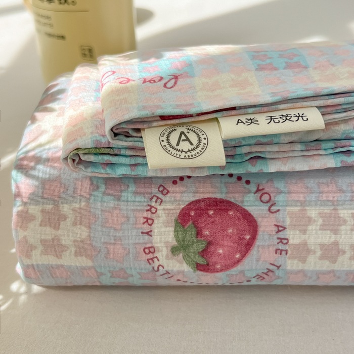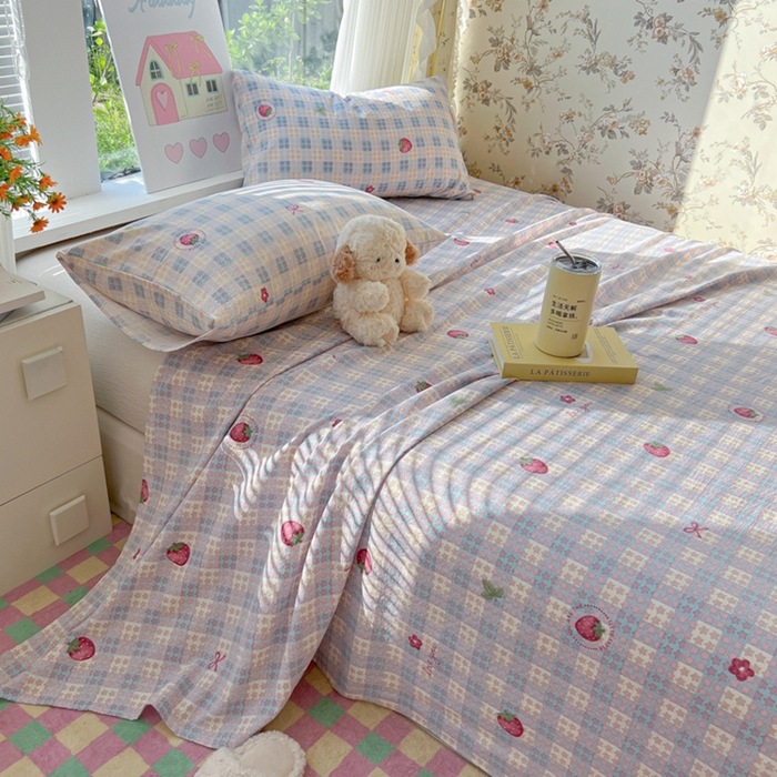Главная страница > Ins клубничные, приятные для кожи, хлопковые двухслойные простыни из пряжи, цельный комплект из трех предметов из мытого хлопка с цветочным принтом, спальня, двуспальная студенческая общежитие