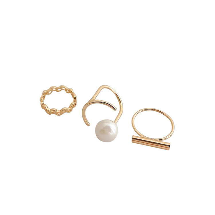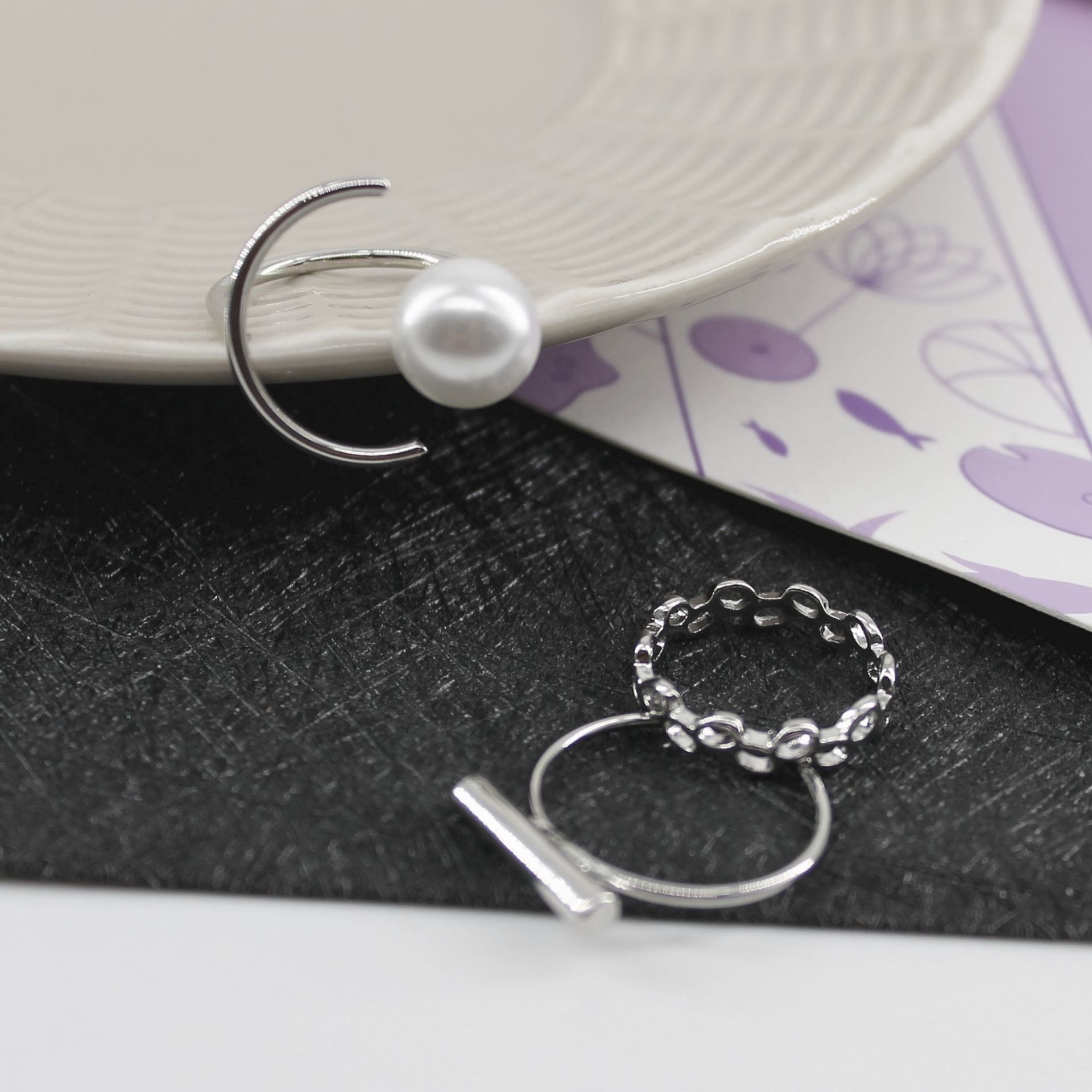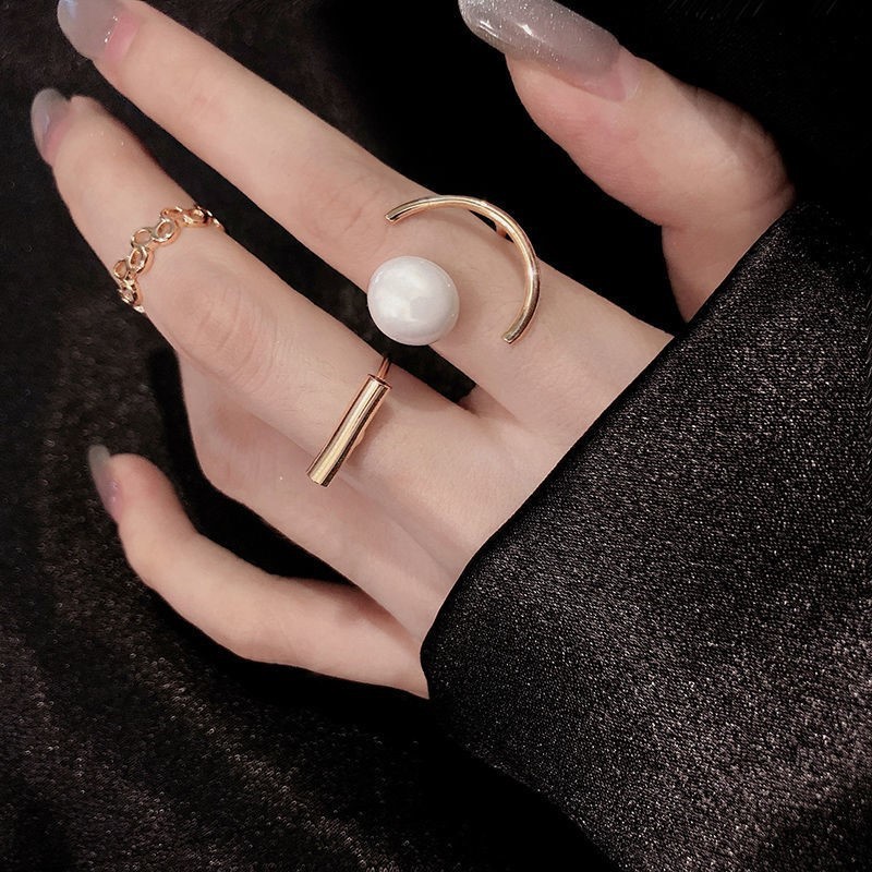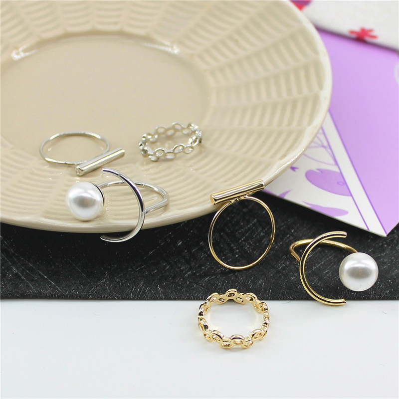 Главная страница > Южная Корея Элегантное Открытое кольцо из трех частей Сладкое жемчужное полукруглое кольцо на палец Персонализированное модное простое кольцо на палец из одного слова