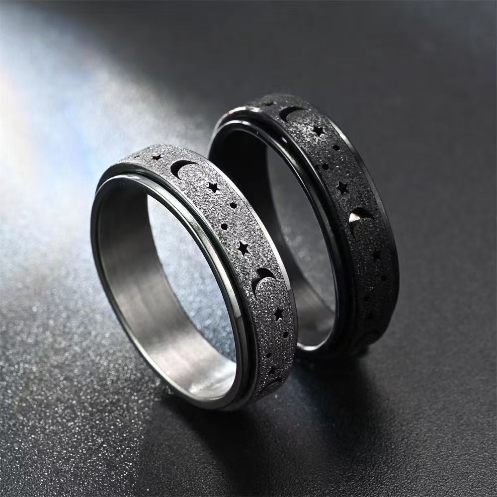 Главная страница > Европейская и американская мода, новые нишевые декомпрессионные украшения, 6 мм, вращающаяся звезда, луна, высококачественное кольцо для пары, оптовая продажа