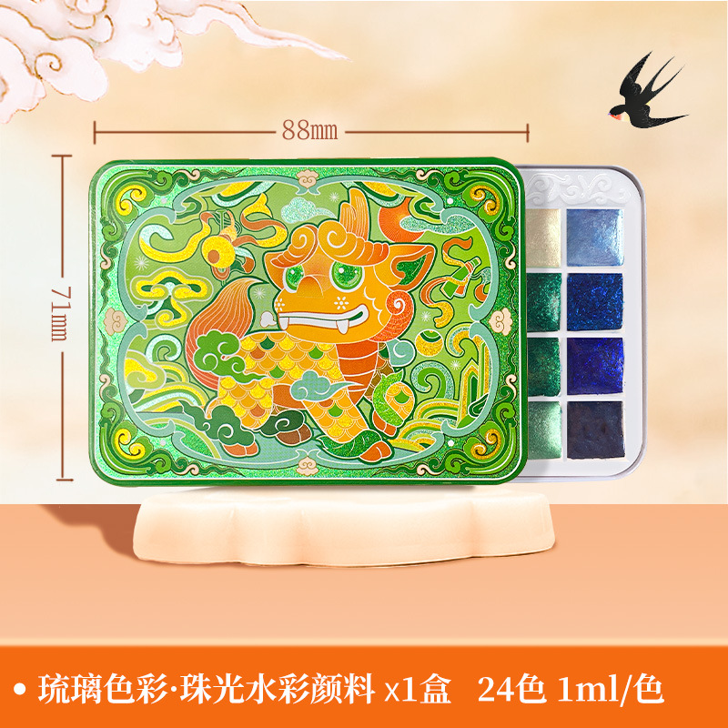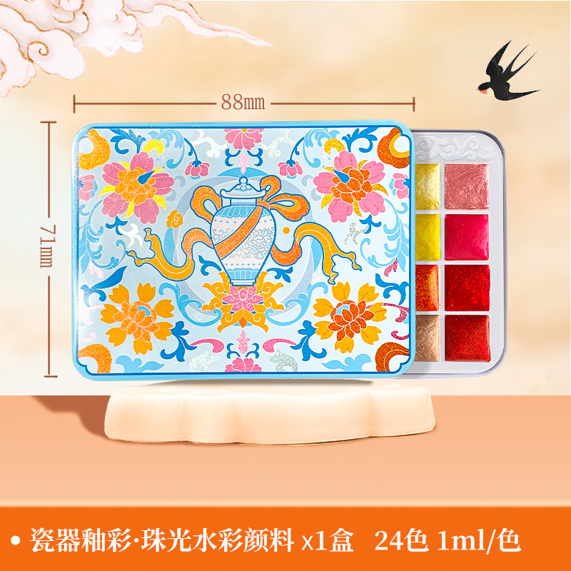 Главная страница > Feilenuo Dunhuang Color Forbidden City National Style 24 цвета Перламутровые акварельные краски для дизайна ногтей Гель-обертка Твердые акварельные краски.