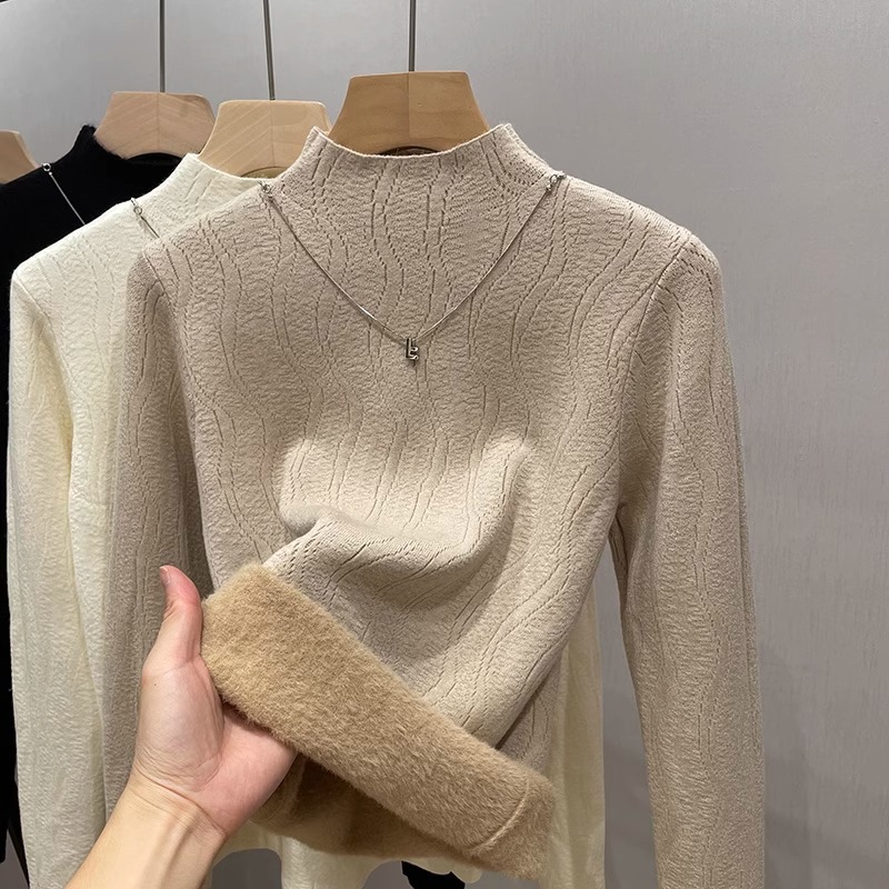 Главная страница > Цельная водолазка из бархатной ткани, теплая цельная рубашка с бархатным низом, Женская осенне-зимняя внутренняя одежда, толстый свитер на флисовой подкладке
