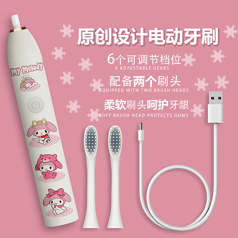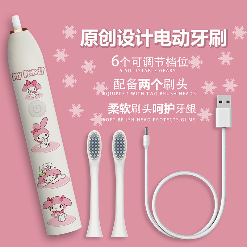 Главная страница > Электрическая зубная щетка Sanrio Kuromi для студентов, звуковая, глубокая чистка, мягкая щетина, перезаряжаемая, портативная чистка зубов