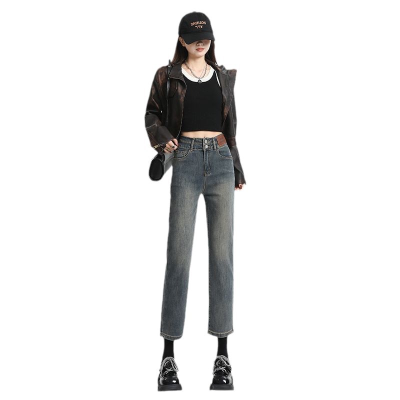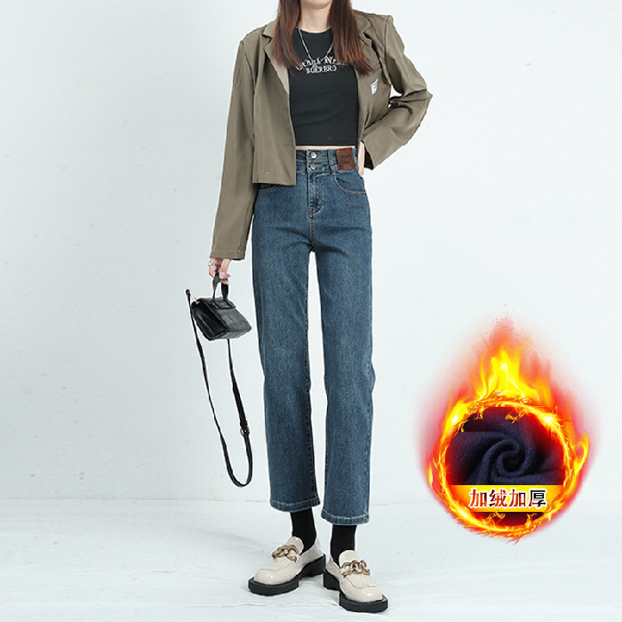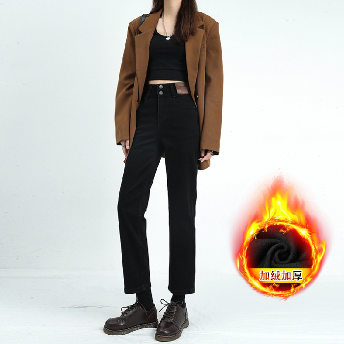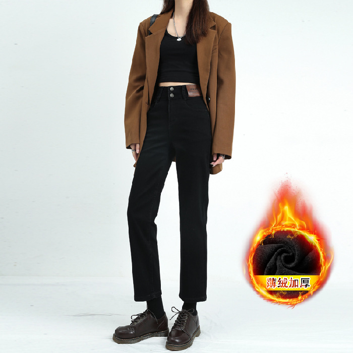 Главная страница > Джинсы на флисовой подкладке для женщин, приталенные прямые джинсы для женщин, осенние стрейчевые брюки-цигареты с высокой талией для женщин, осенние и зимние укороченные брюки для женщин.
